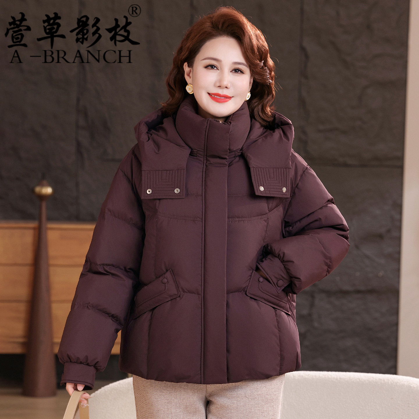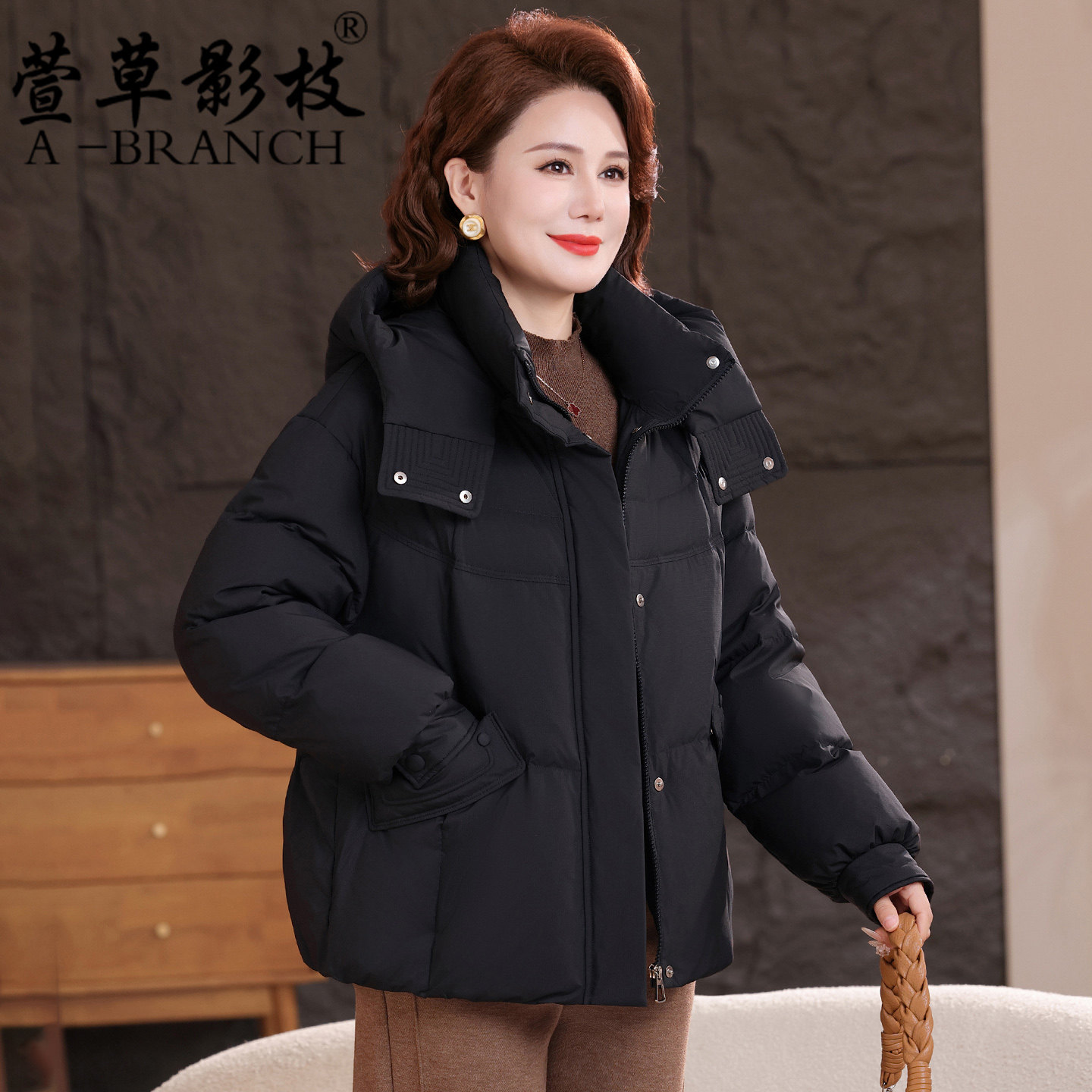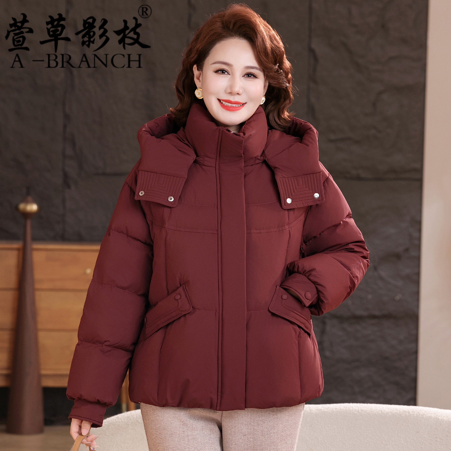 妈妈冬装洋气连帽羽绒服短款中年女时尚大码外套中老年保暖厚棉袄