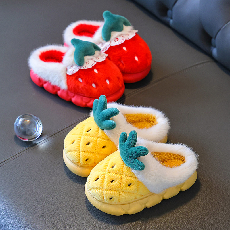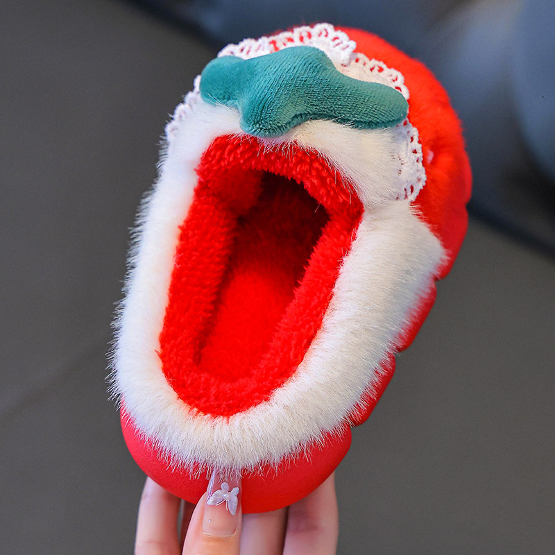 冬季棉拖鞋儿童女童2025保暖防滑男童毛毛鞋亲子宝宝棉鞋草莓可爱