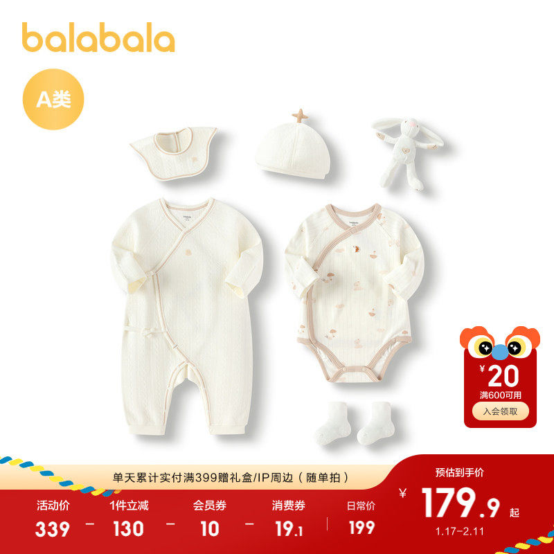 巴拉巴拉新生儿用品大全礼盒满月礼物六件装高级品质柔软亲肤舒适