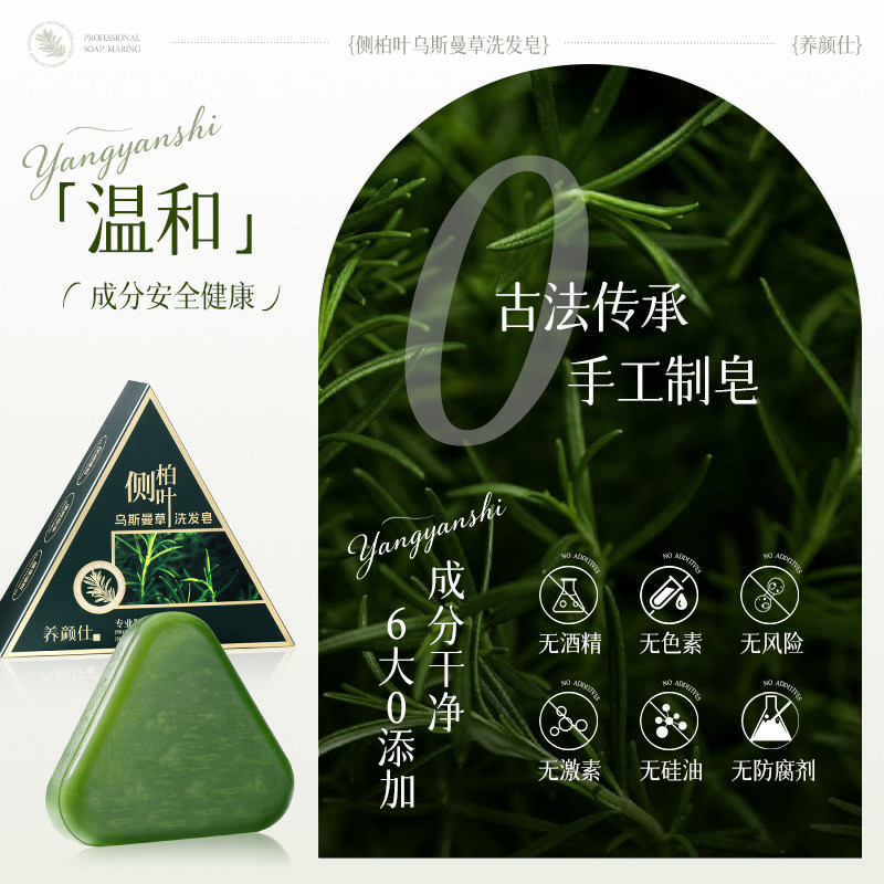 侧柏叶洗发皂新疆乌斯曼草何首乌固发防脱中药洗头精油手工药皂