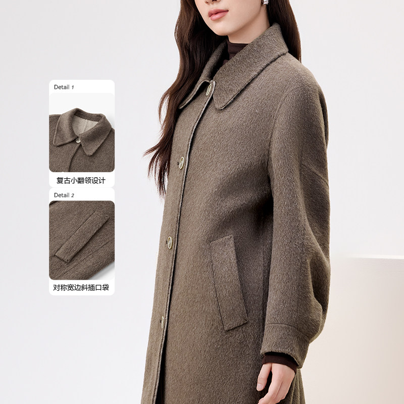 反季双面羊毛大衣女中长款2025新款西装领双排扣宽松显瘦毛呢外套