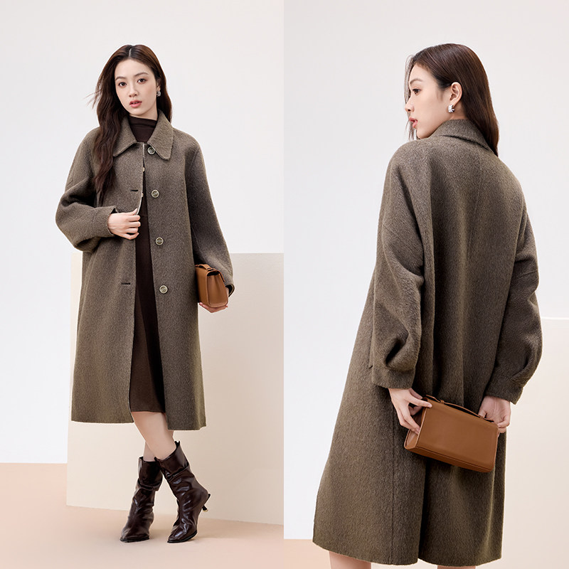 悦戎秘鲁进口苏力羊驼毛大衣女中长款2025秋冬皮草感羊毛呢外套