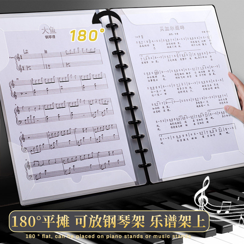 a4活页乐谱夹收纳册不反光可修改透明插页钢琴专用夹子大容量合唱歌谱曲资料册文件夹琴谱夹音乐吉他专业黑色
