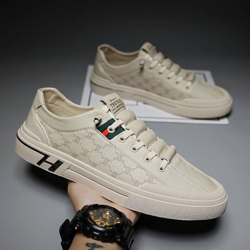 男鞋春季透气潮流百搭小白平板鞋一脚蹬男士休闲皮鞋软底运动潮鞋