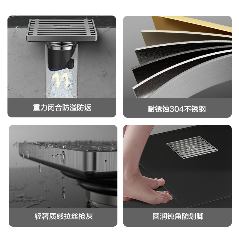 九牧铜合金地漏枪灰大流量防臭防堵卫生间通用浴室洗衣机两用芯盖