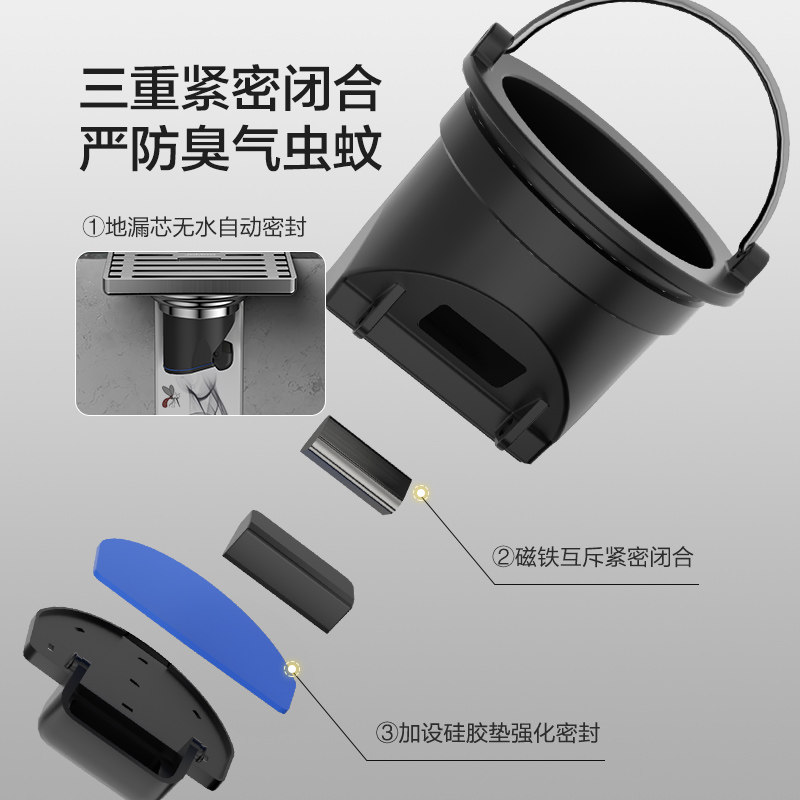 九牧地漏枪灰色304不锈钢加厚干湿下水防臭阳台洗衣机防虫防返水