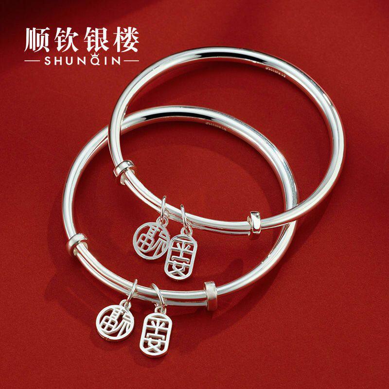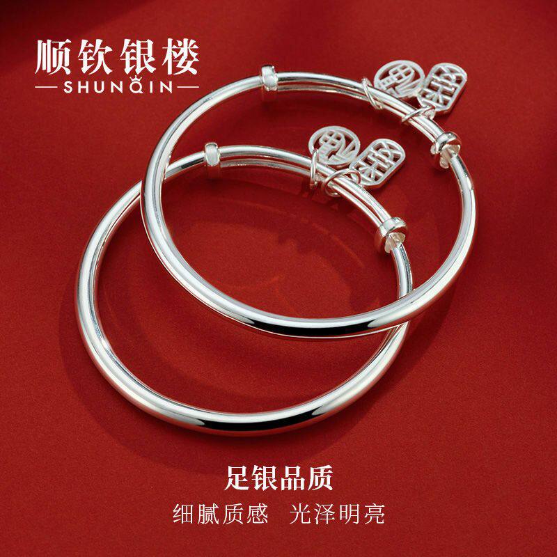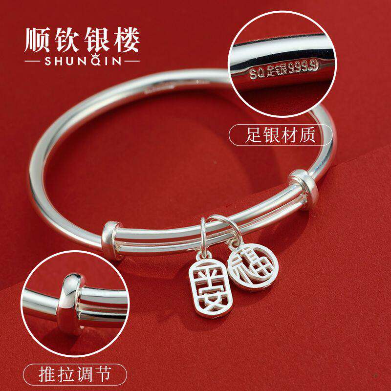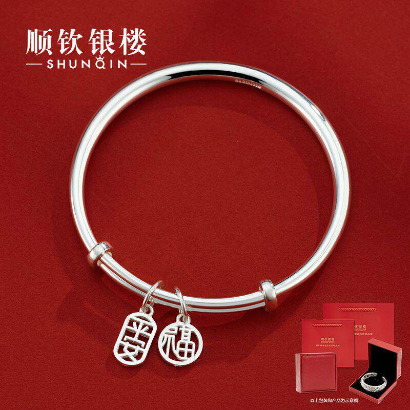 【幂琳】顺钦银楼S9999纯银手镯女平安福足银镯子520送给女朋友的