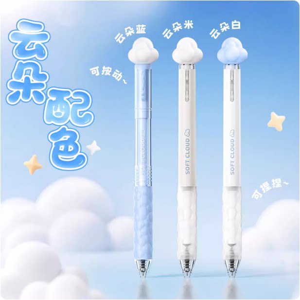爱好云朵棉花糖按动笔软乎乎高颜值软握硅胶中性笔刷题笔学生专用