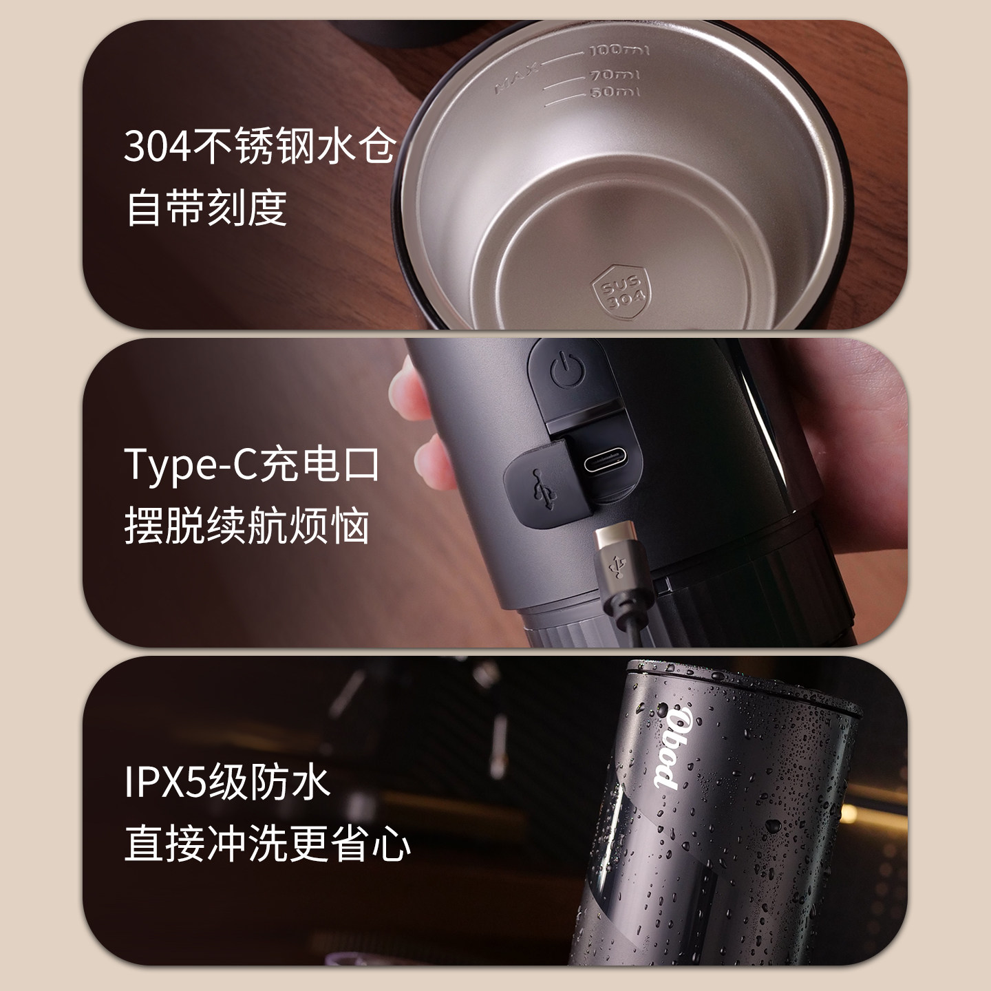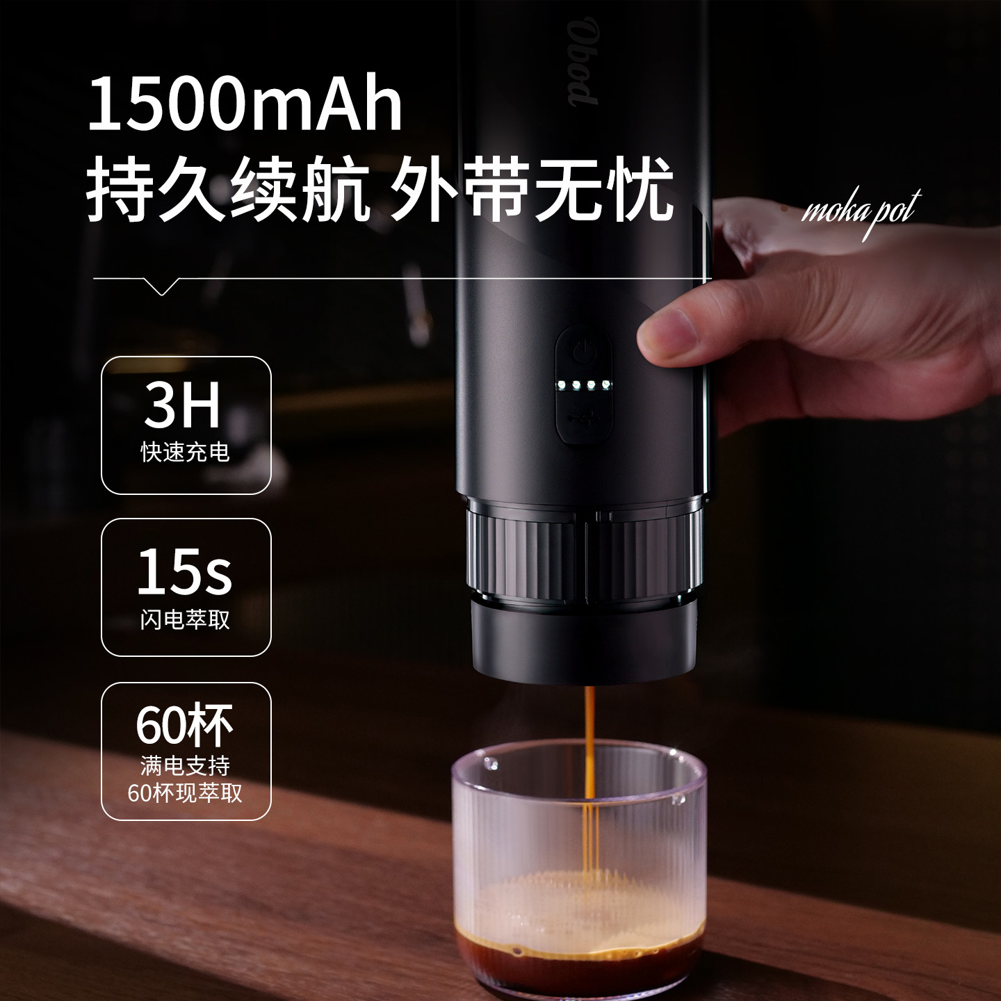 Obod便携式咖啡机套装电动意式浓缩咖啡机小型家用户外胶囊萃取机