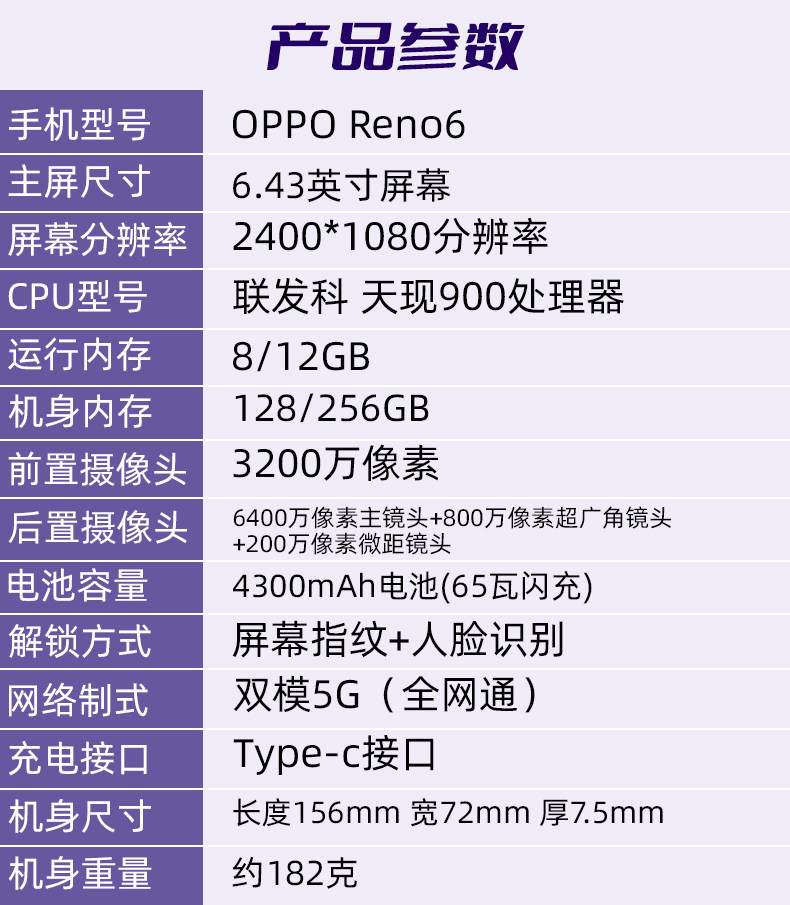 OPPO Reno6 5G 天玑900处理器 65瓦超级闪充支持NFC 旗舰智能手机