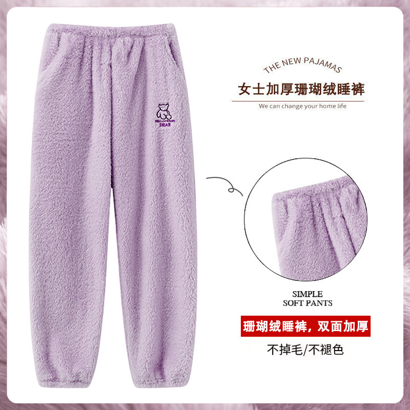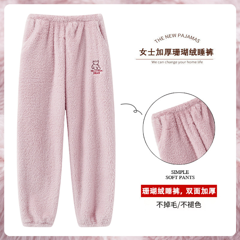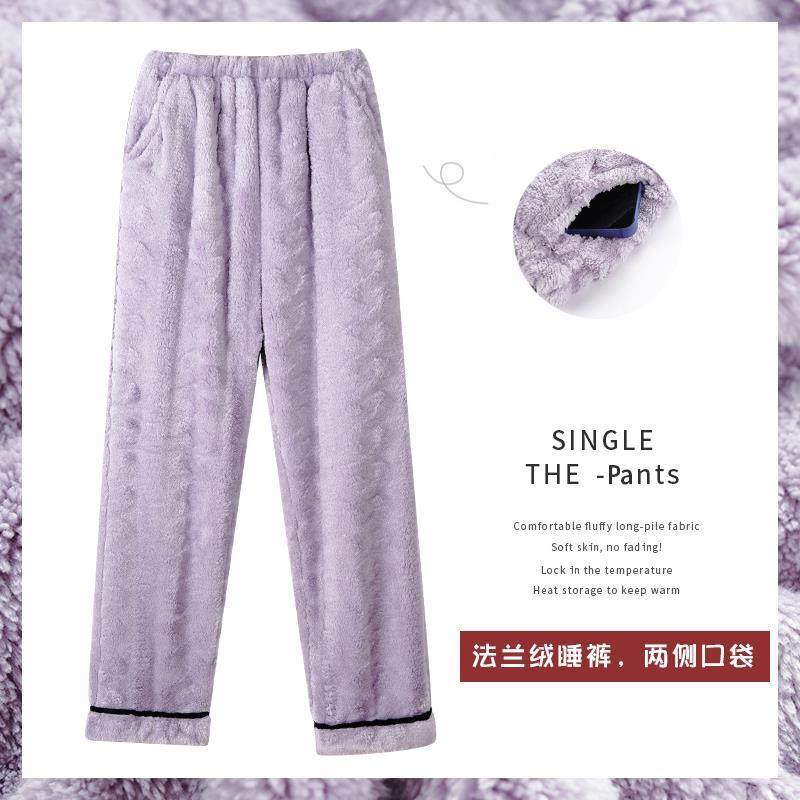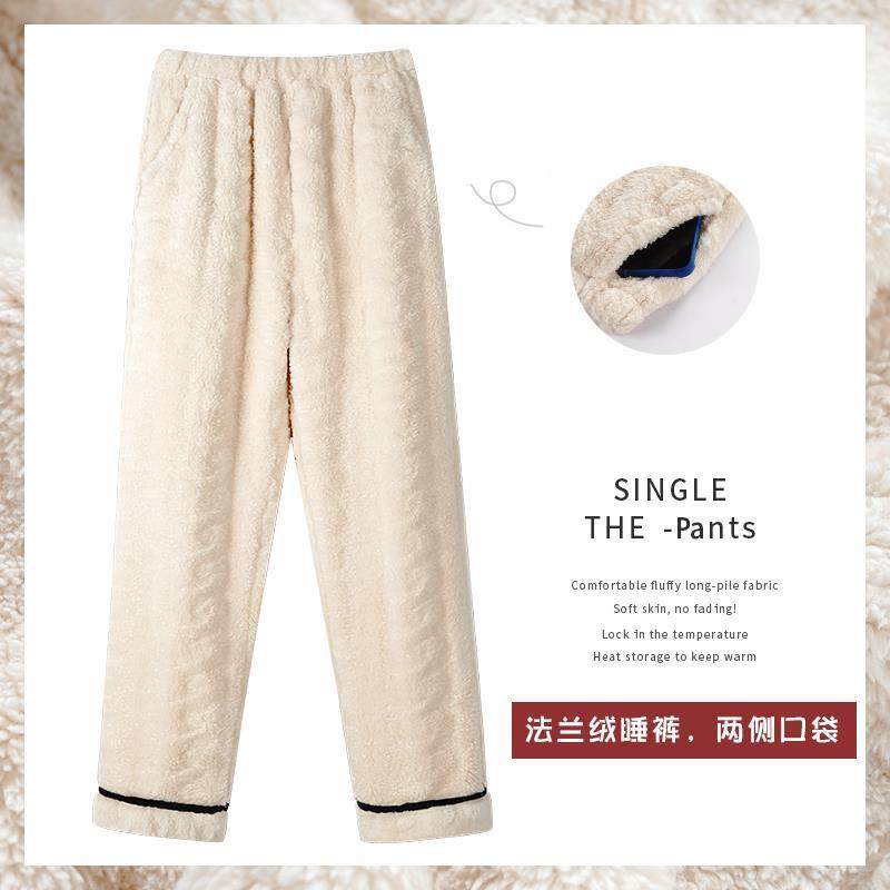 秋冬季睡裤女加绒加厚珊瑚绒仙女暖暖裤宽松大码法兰绒长裤家居裤