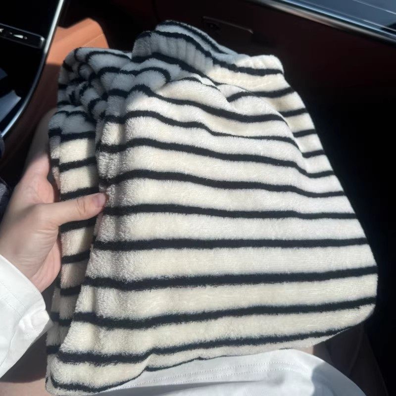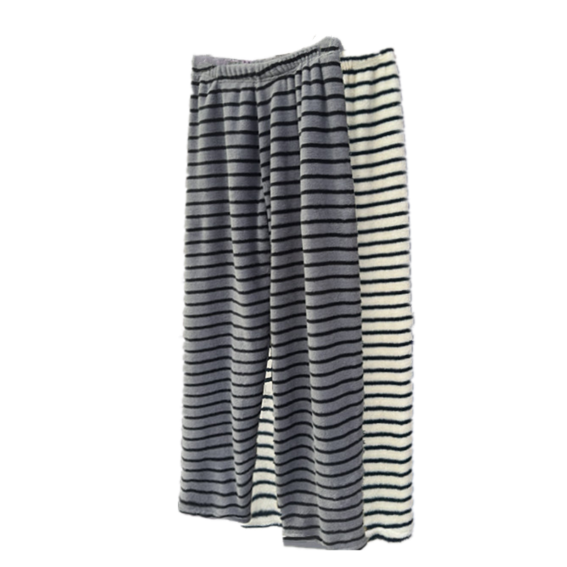 睡裤女长裤秋冬条纹遛弯裤加绒加厚法兰绒暖暖裤珊瑚绒直筒家居裤