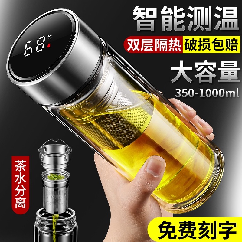 智能测温双层玻璃杯家用男女士茶水分离泡茶杯子商务高级隔热水杯