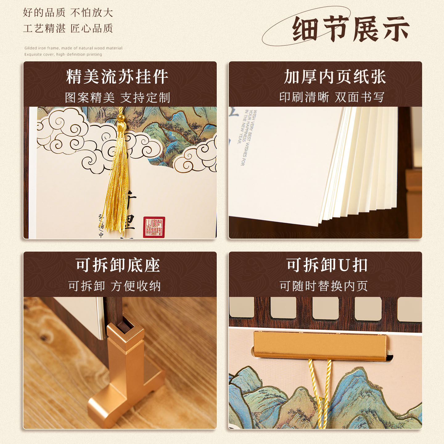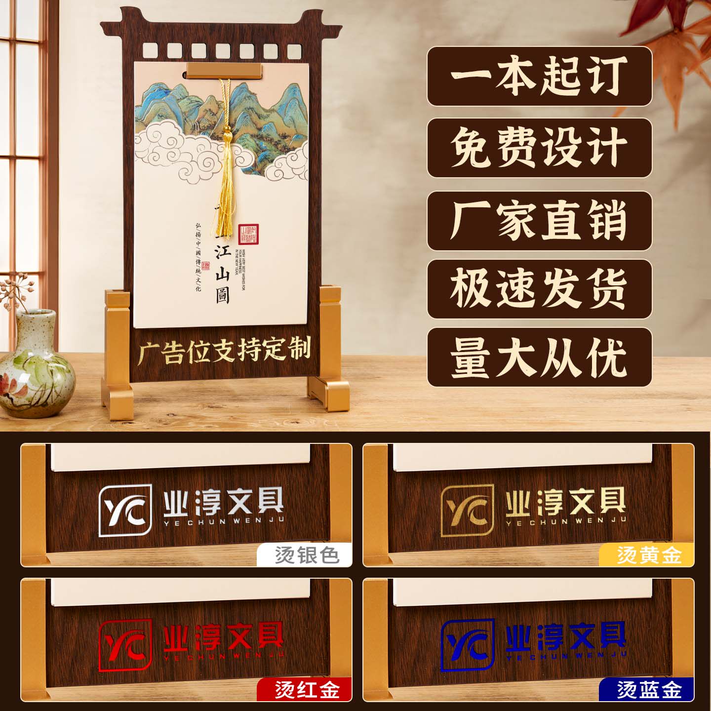 中国风竖款木架流苏屏风台历2026年新款定制可印logo公司企业广告定做商务办公室创意摆件桌面日历月历批发