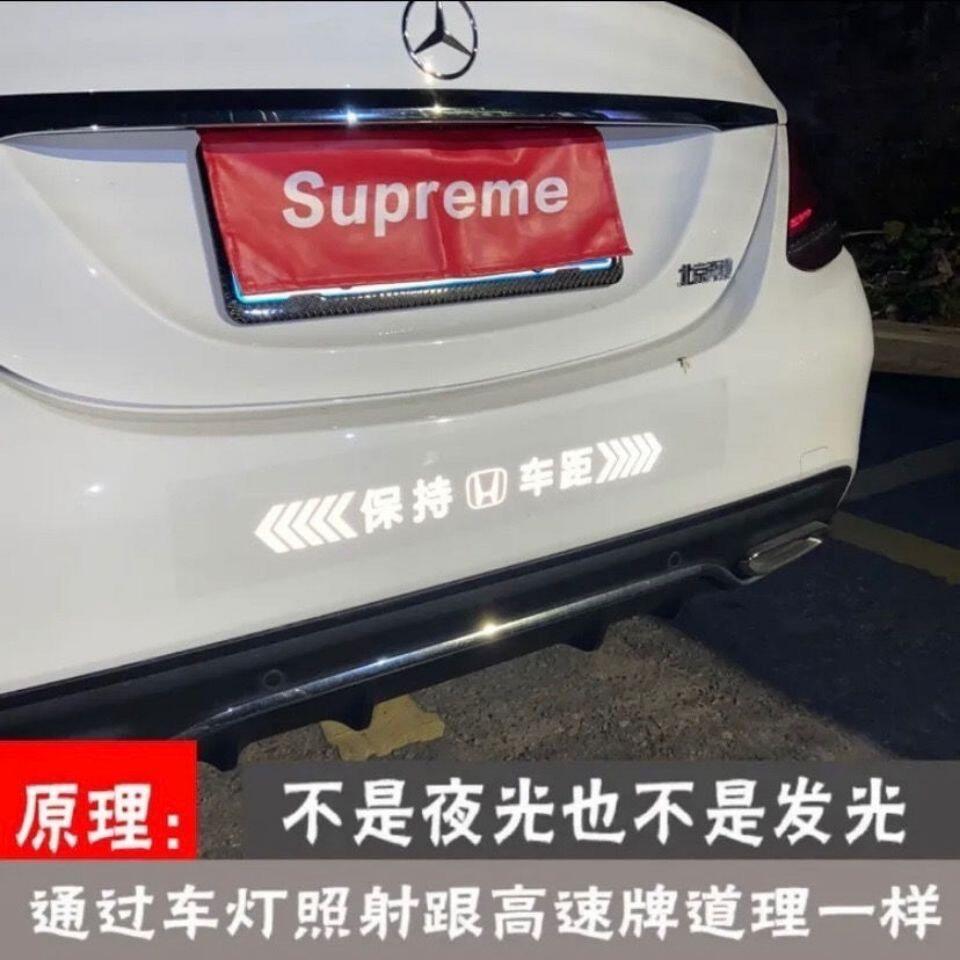 反光贴汽车贴纸保持车距警示创意个性车尾保险杠划痕遮挡装饰车贴