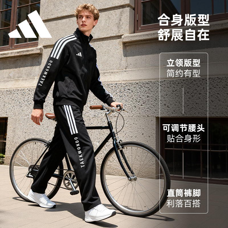 阿迪达斯运动套装男装秋冬新款针织保暖跑步休闲裤宽松束脚长裤