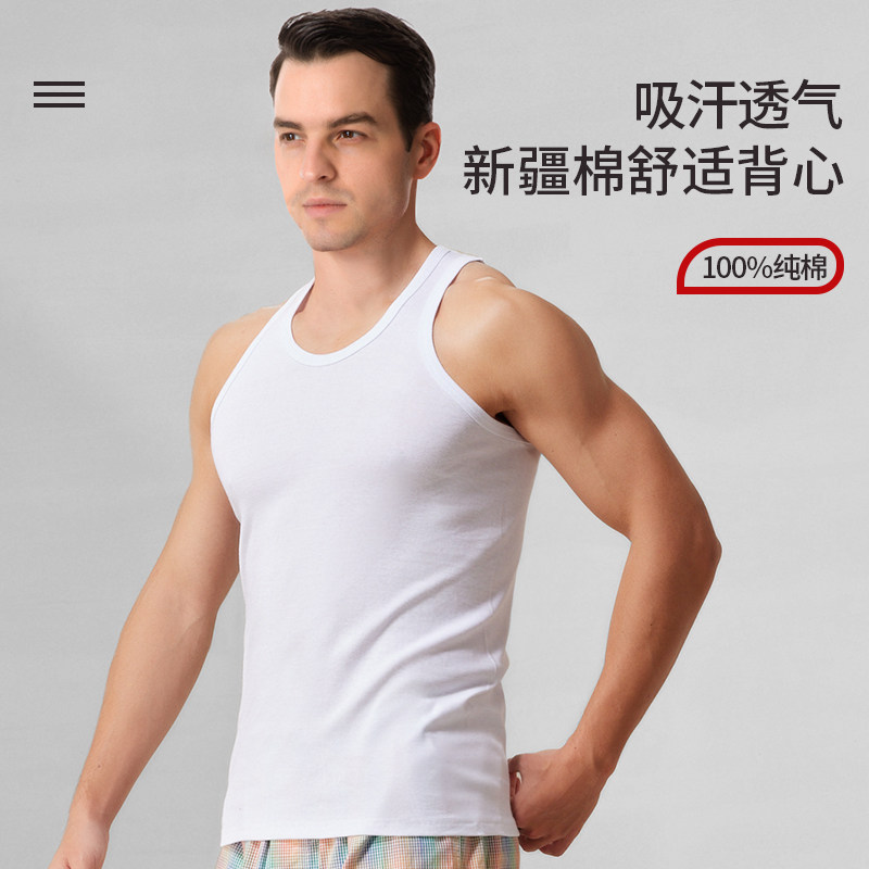 浪莎背心男士内穿打底纯棉宽松男款全棉运动健身跨栏男式春夏内搭