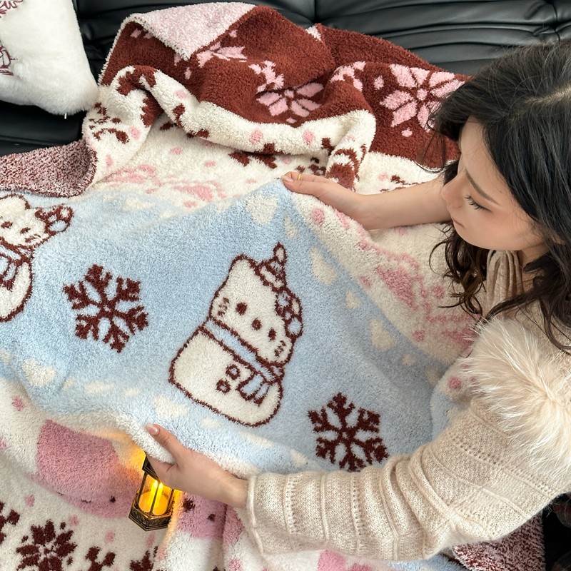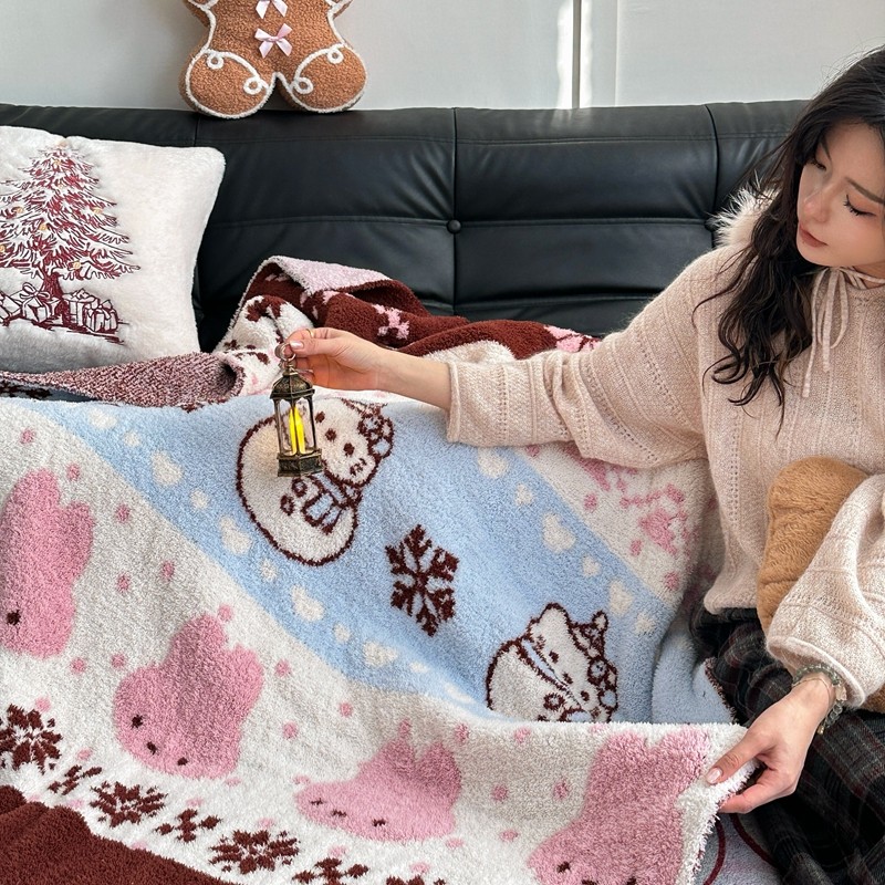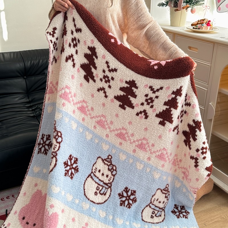 圣诞新款半边绒针织毯毛毯单人宿舍沙发盖毯子办公室披肩小毛毯被