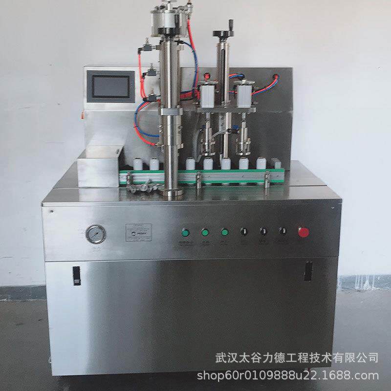 半自动气雾剂铝瓶灌装机 二元袋阀爽肤水气雾罐封口充气填充机