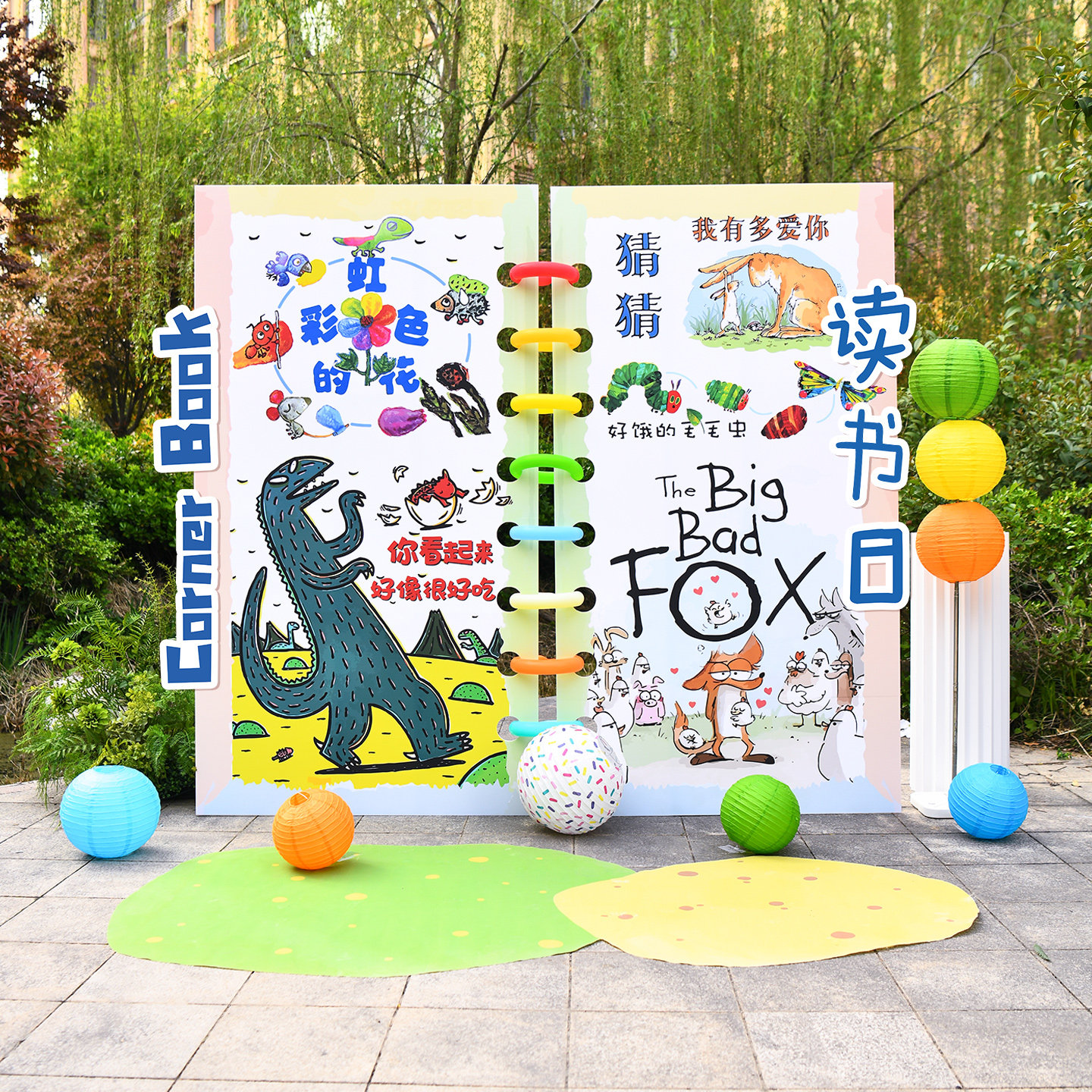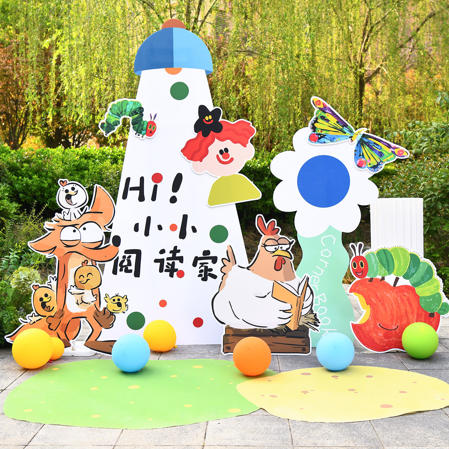 学校读书日布置学生阅读活动场景装饰室内外卡通绘本kt板背景板