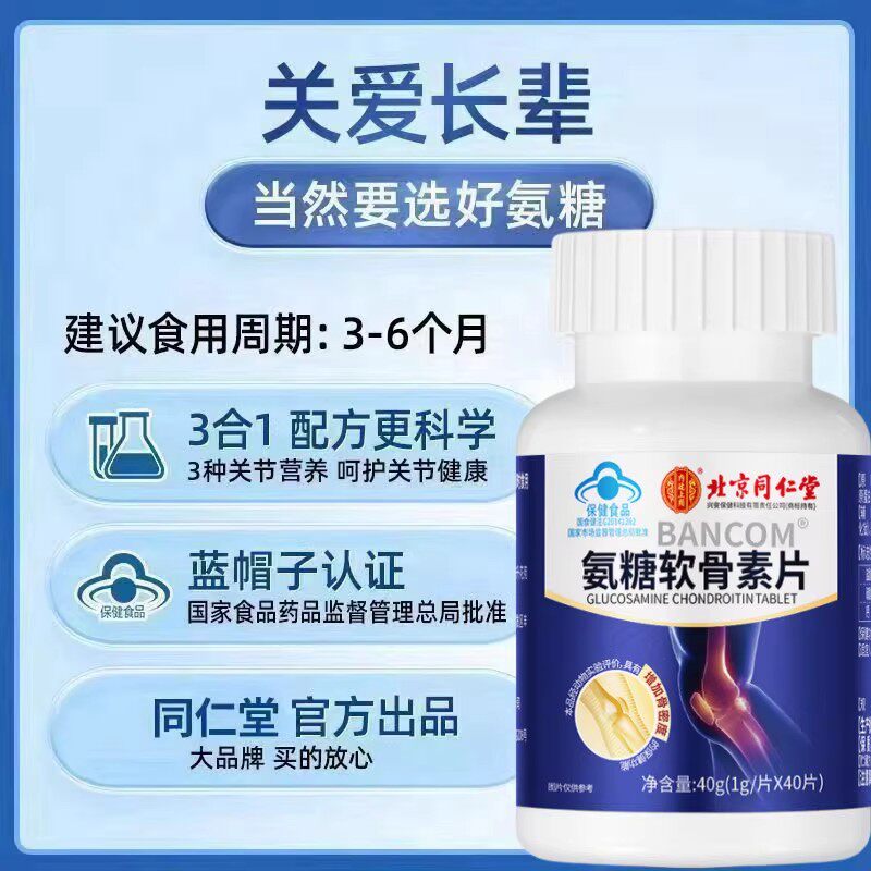 北京同仁堂氨糖软骨素钙片中老年人护关节补钙腿抽筋骨质疏松健康