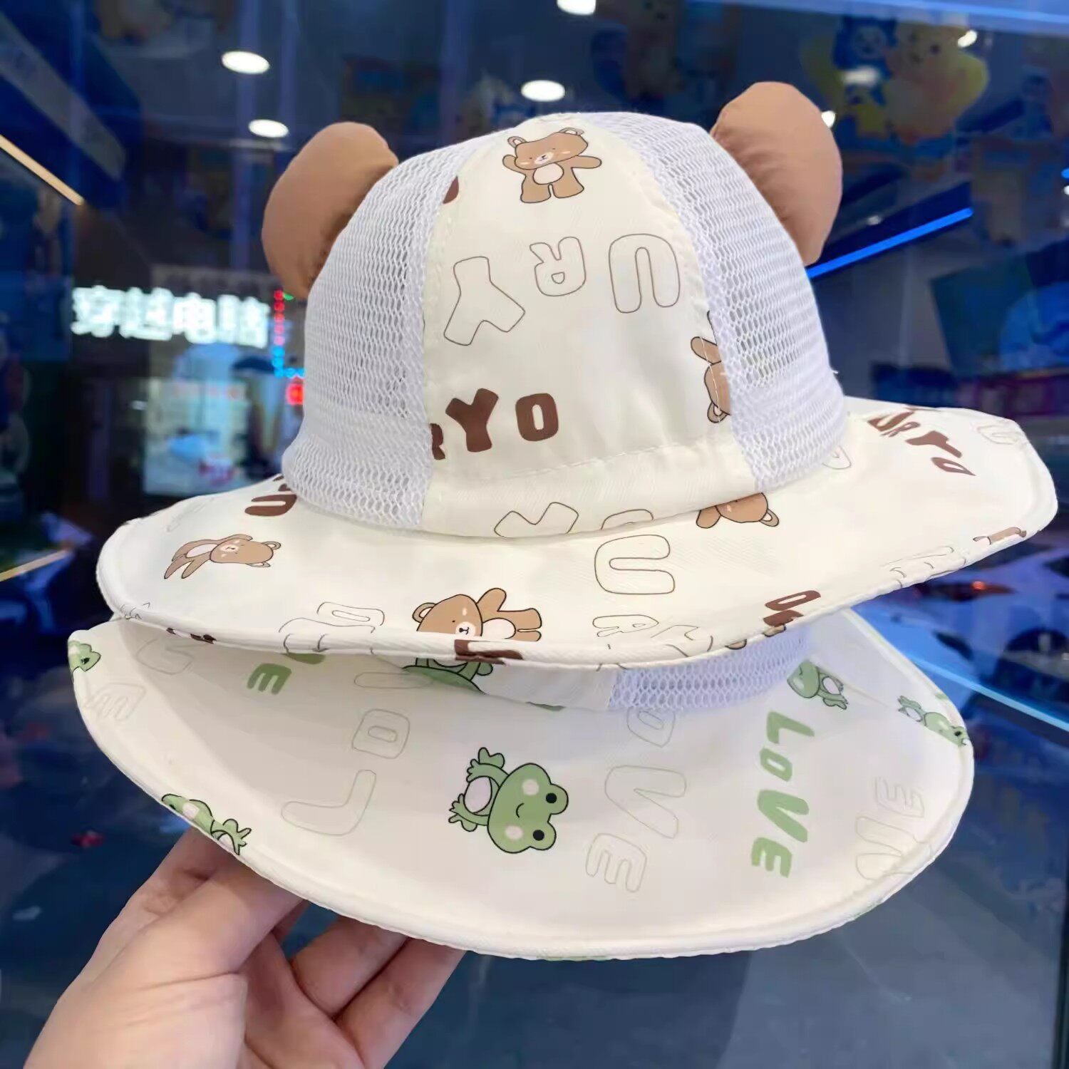 婴儿防晒帽子夏季薄款宝宝网眼渔夫帽大檐夏天男童透气太阳遮阳帽