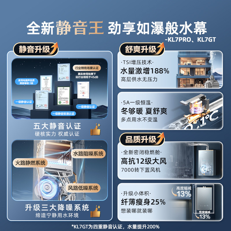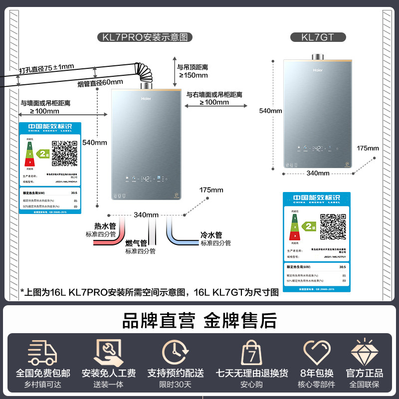 海尔燃气热水器16KL7PRO家用天然气静音恒温增压零冷水可选KL7GT