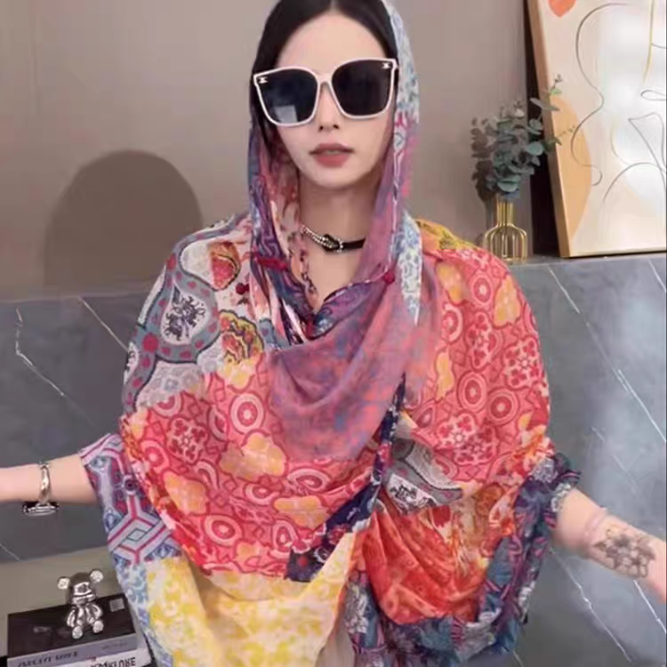 民族风【泰兰德】夏季披肩 复古盘扣防晒棉麻披肩罩衫百搭沙滩巾