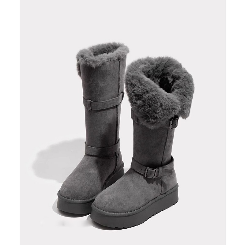 灰色长筒雪地靴女2025冬季新款厚底增高加绒加厚高筒鞋子毛绒绒面