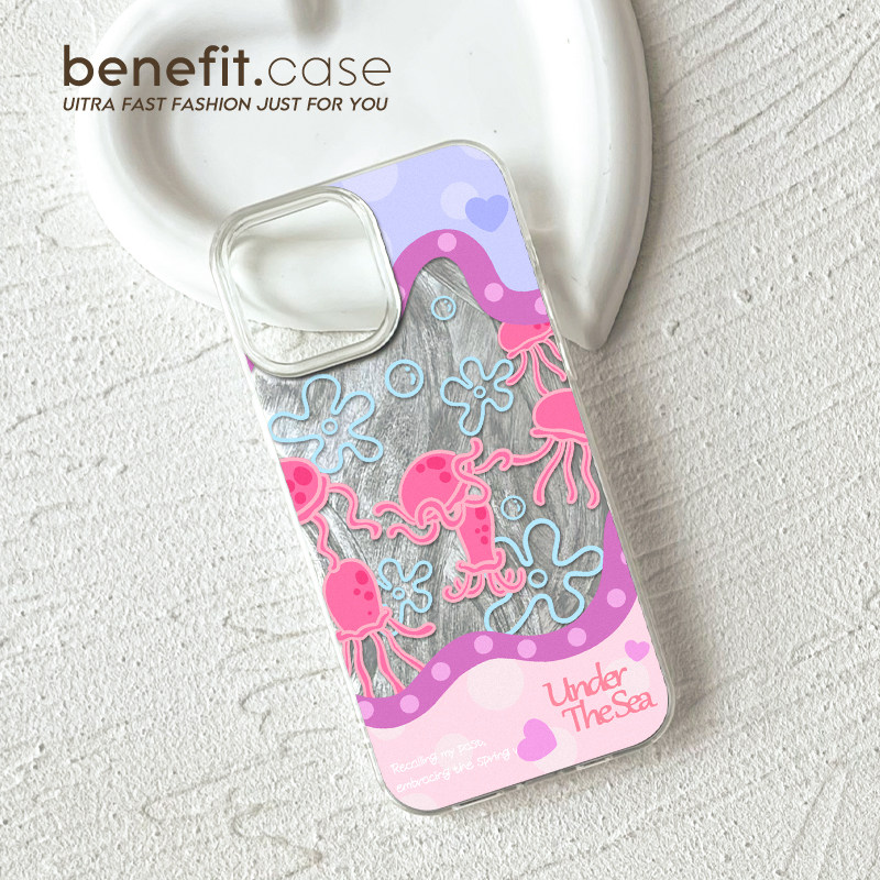 benefit蓝色泡泡粉红水母17适用于iphone16promax苹果15PRO手机壳13新款14套12创意11羽纱xsmax硅胶xr防摔8p