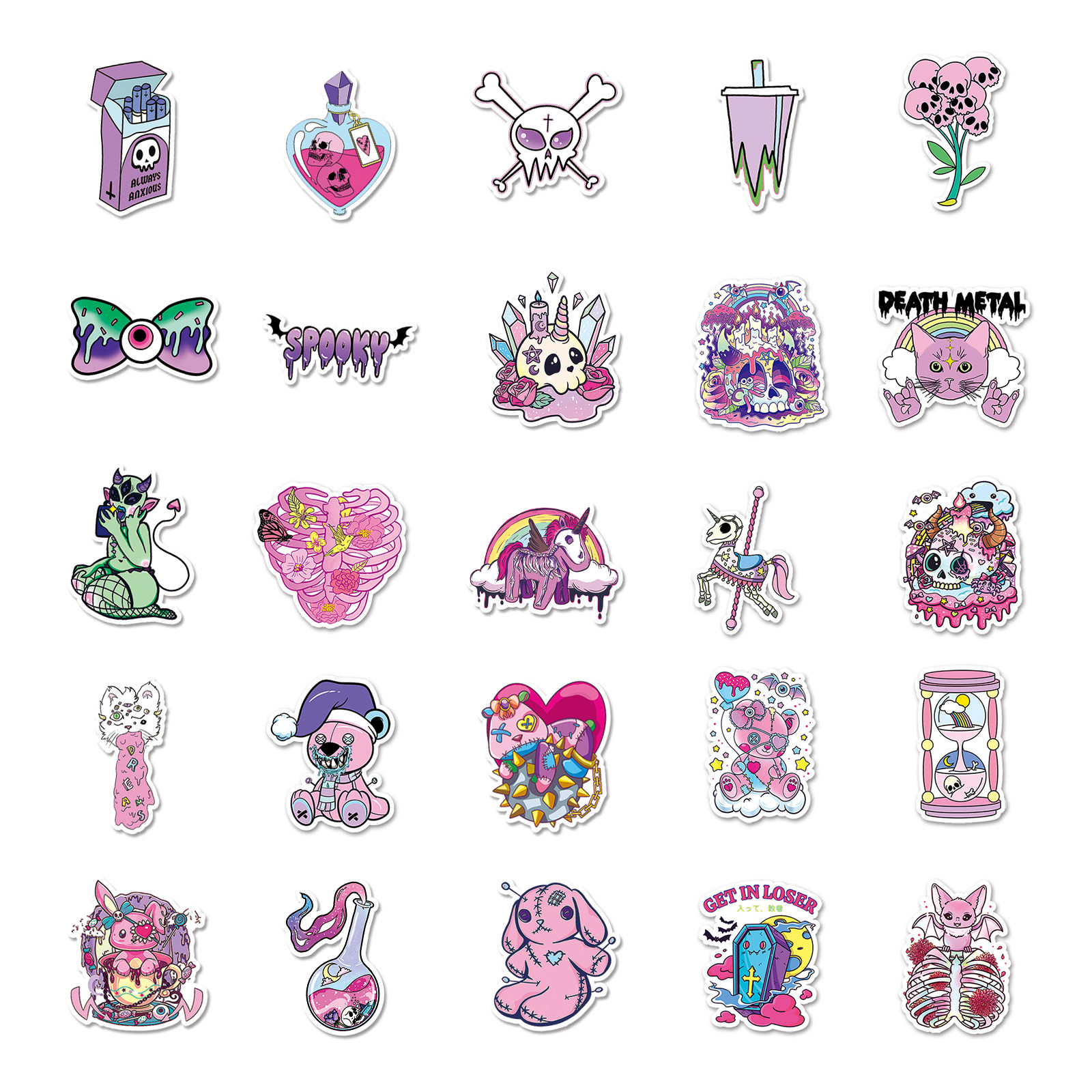 100张粉彩哥特贴纸潮流卡通涂鸦滑板车水杯电脑平板防水装饰贴画