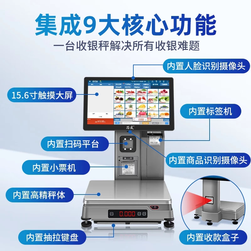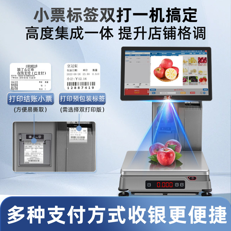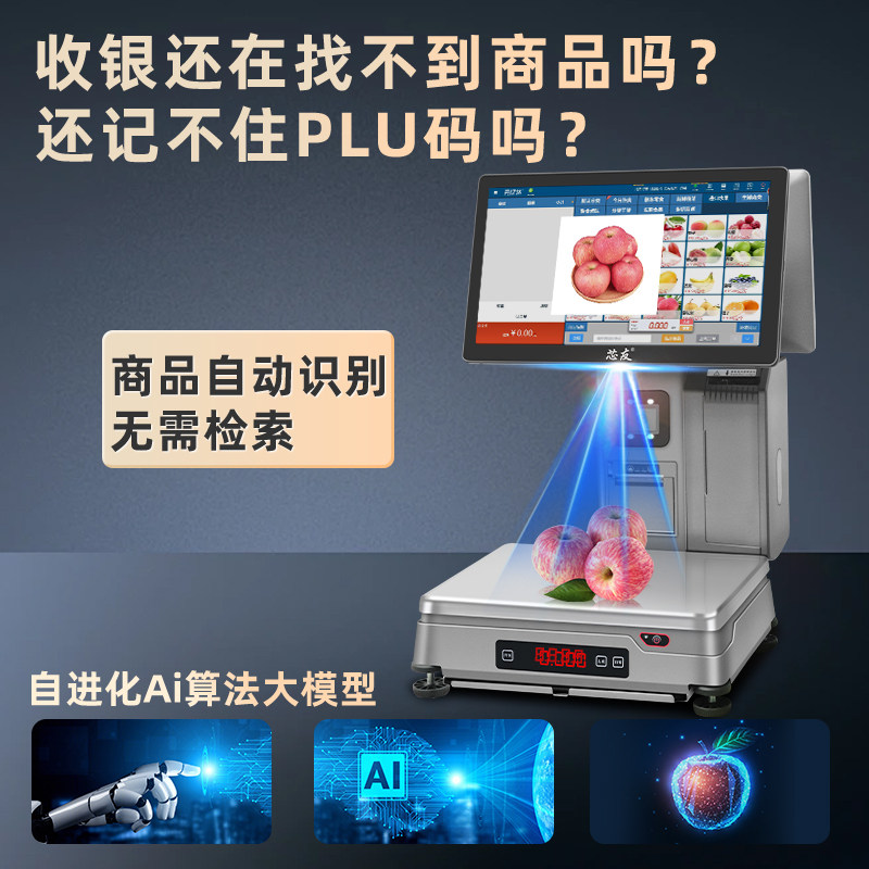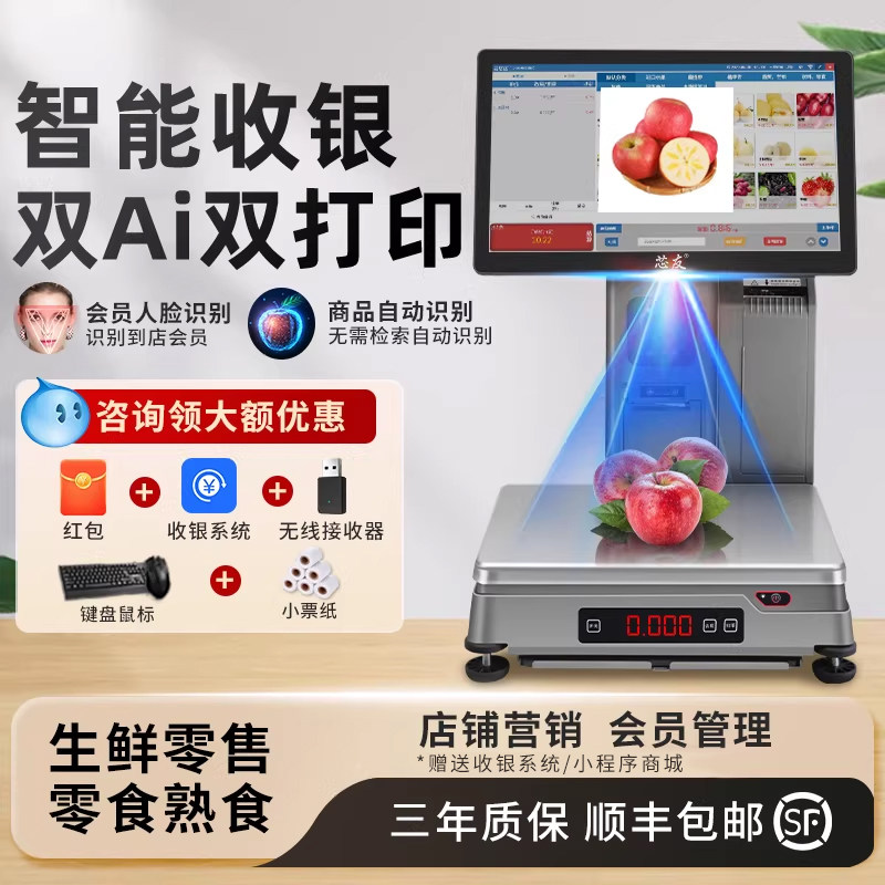 【芯友旗舰】专用称重Ai识别秤收银机一体机收款机生鲜蔬菜超市质保3年适用单店连锁门店 提供系统调试