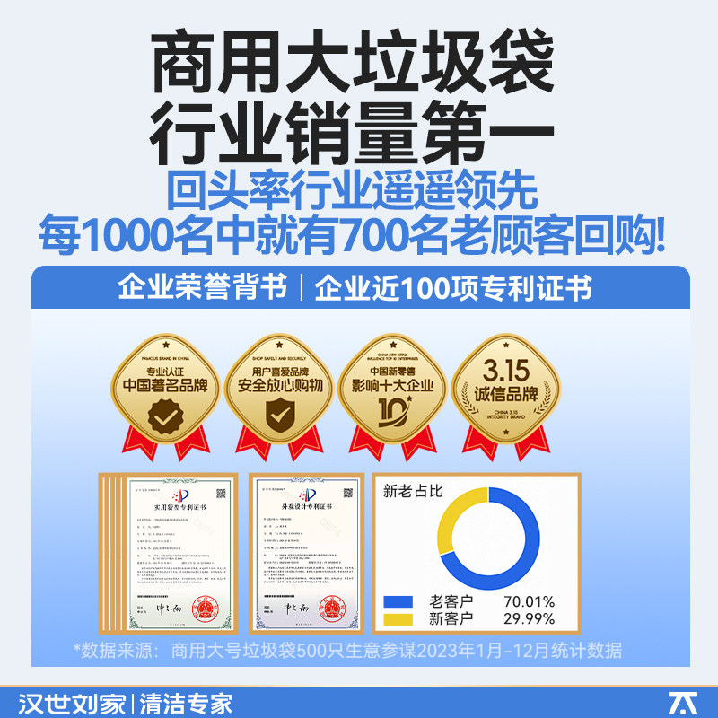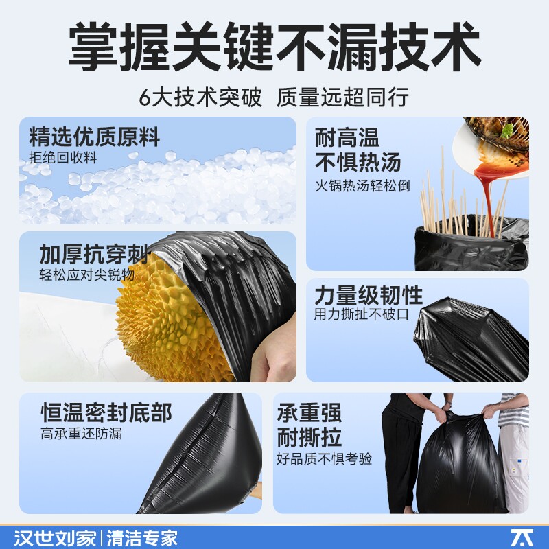 汉世刘家大号商用垃圾袋特大加厚酒店环卫餐饮黑色塑料袋特厚平口