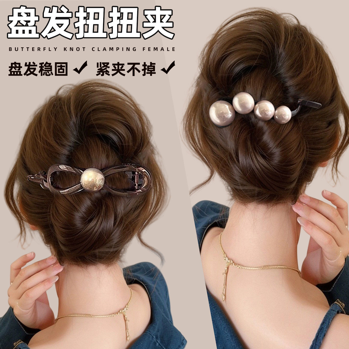 简约大号珍珠一字发夹女2026新款后脑勺高级感抓夹扭扭夹气质头饰