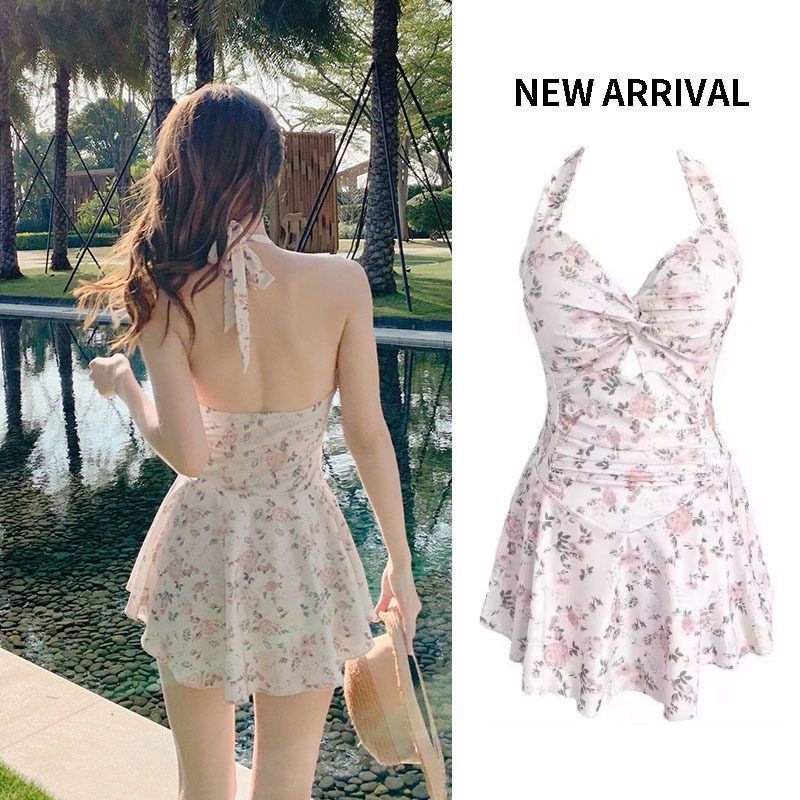 2025新款连体泳衣女碎花性感保守高级感显瘦挂脖女士温泉游泳装夏