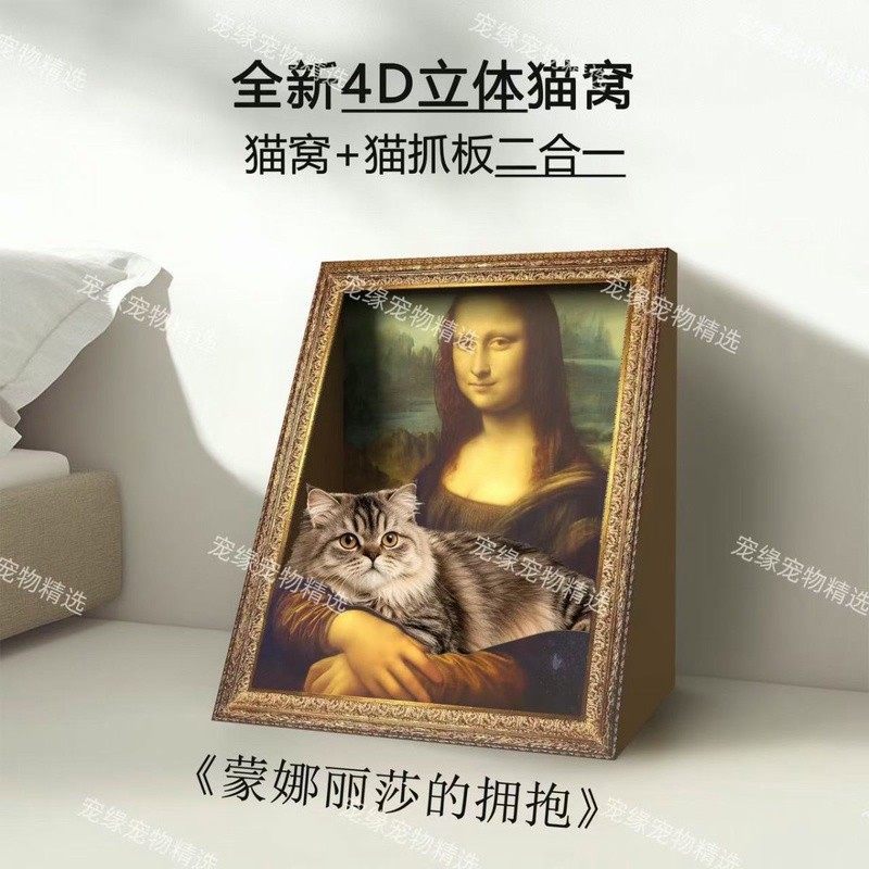 蒙娜丽莎猫窝油画猫抓板相框立式耐磨一体名画猫屋猫玩具立体替换