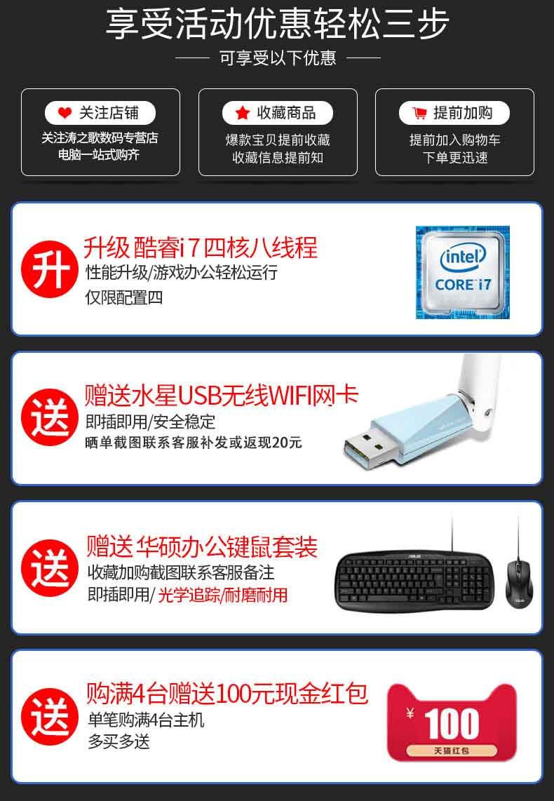 全新/华硕台式机电脑Intel/英特尔酷睿I5/I7四核内置DVD全套整机DIY组装机家用办公商务高端办公电脑主机