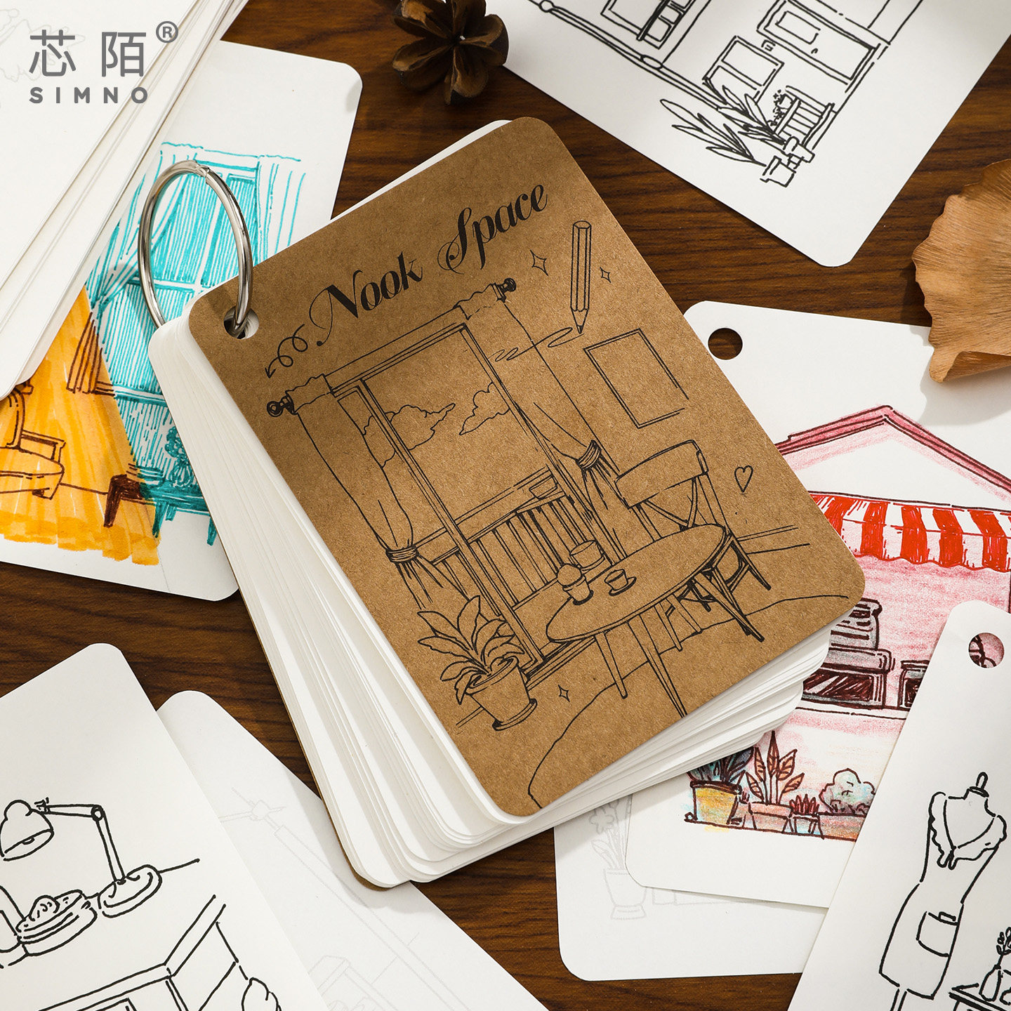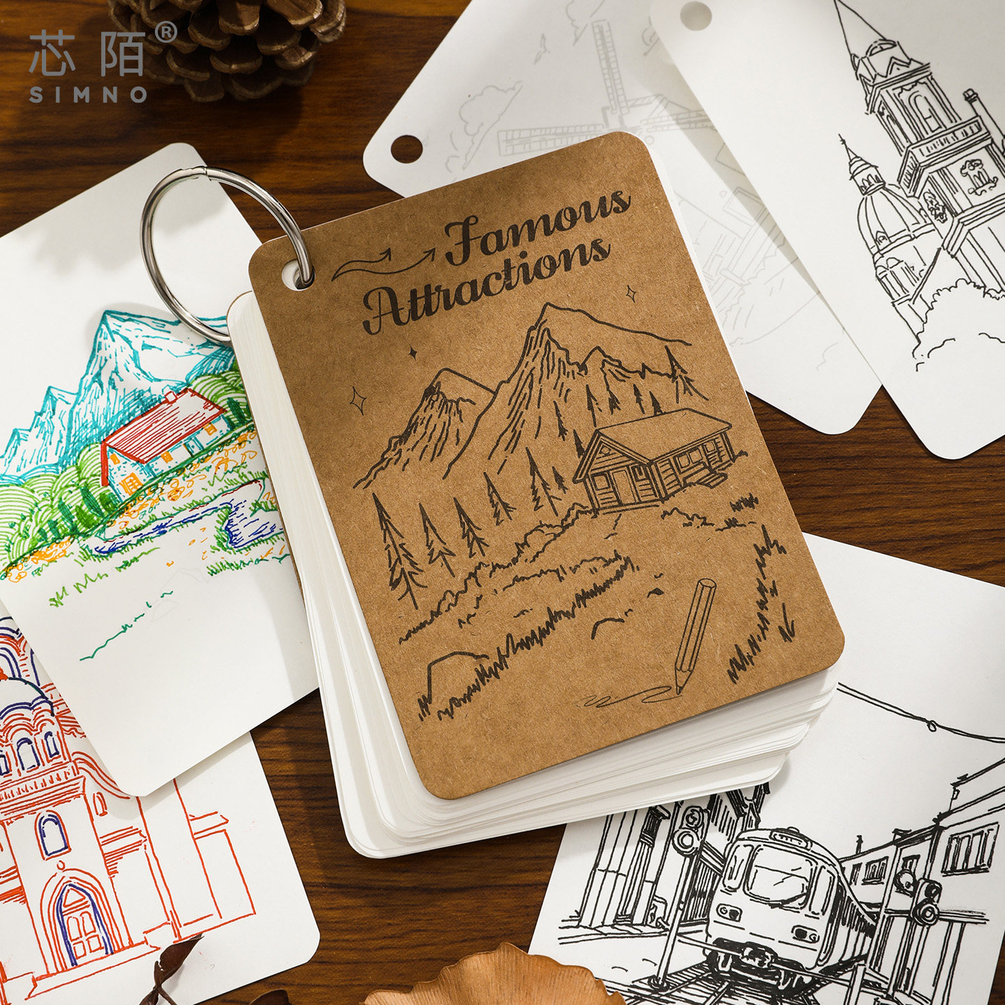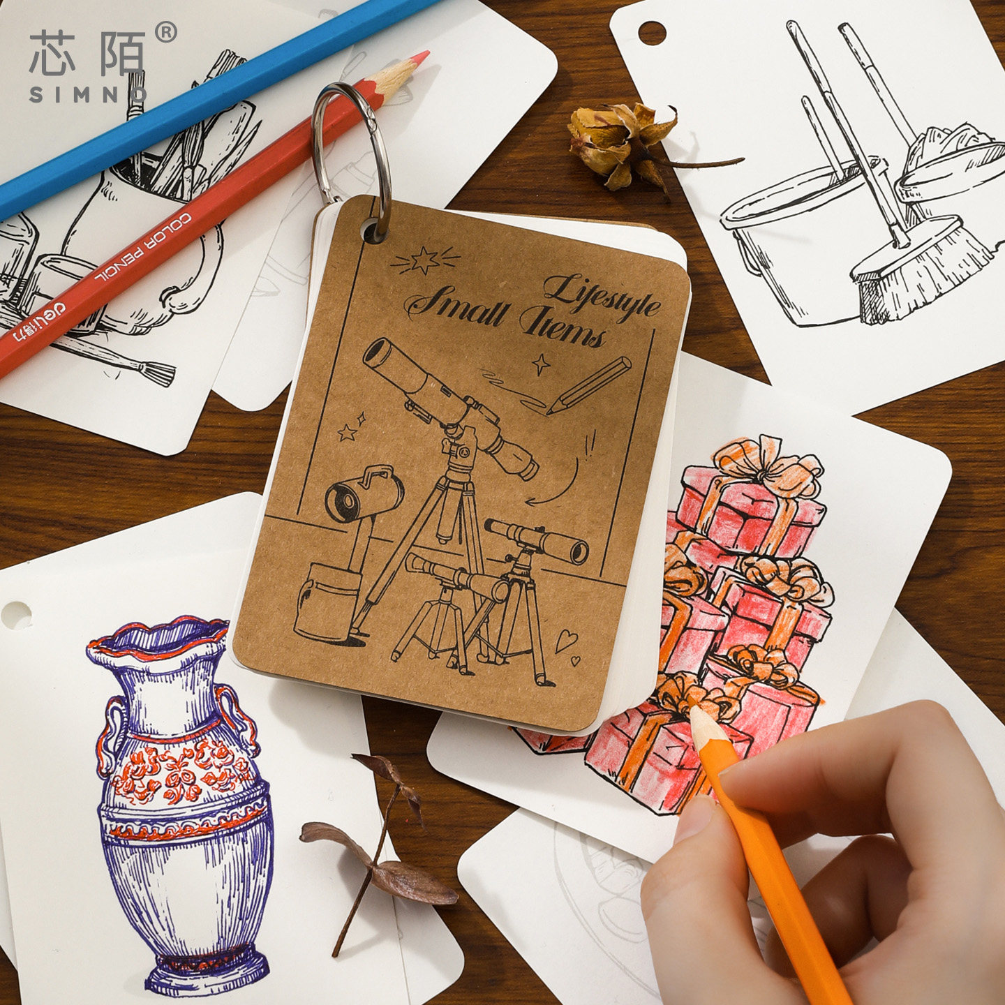 芯陌趣味临摹小画线条画新款小红书同款环扣速写涂色本儿童益智玩具办公室多重玩法涂色解压休闲玩具素描本