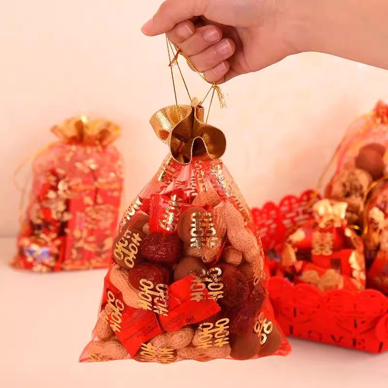 喜糖袋纱袋喜糖袋子结婚专用盒子纱糖新款装的糖袋子抽绳束口婚礼