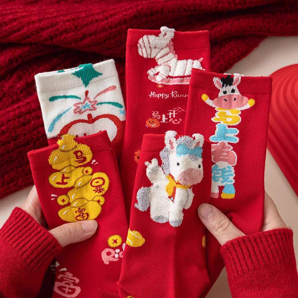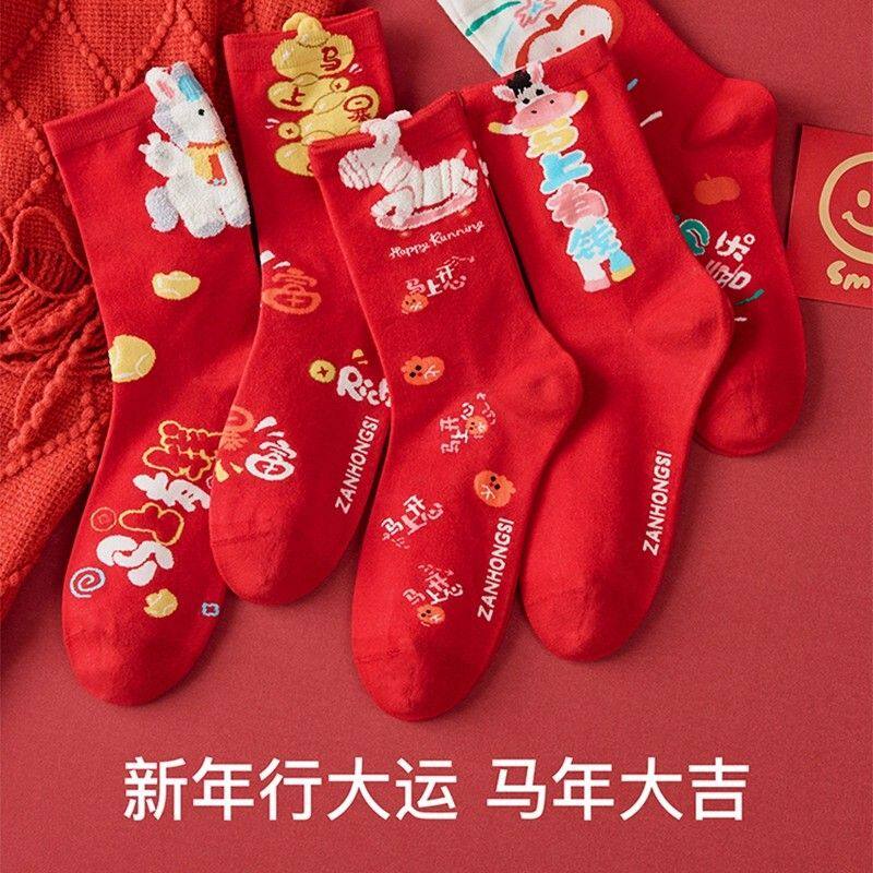 本命年袜子2026马年男女红袜子中筒袜秋冬季新年保暖长袜结婚礼物
