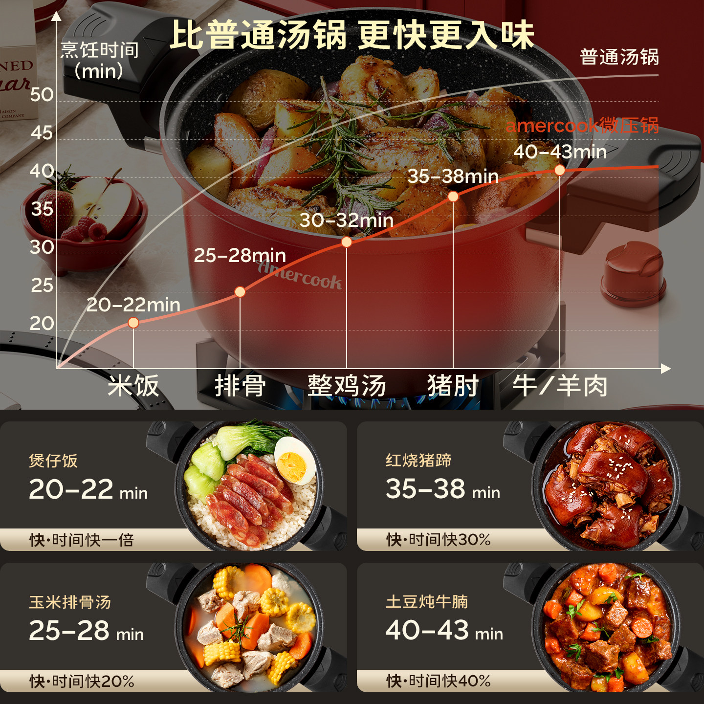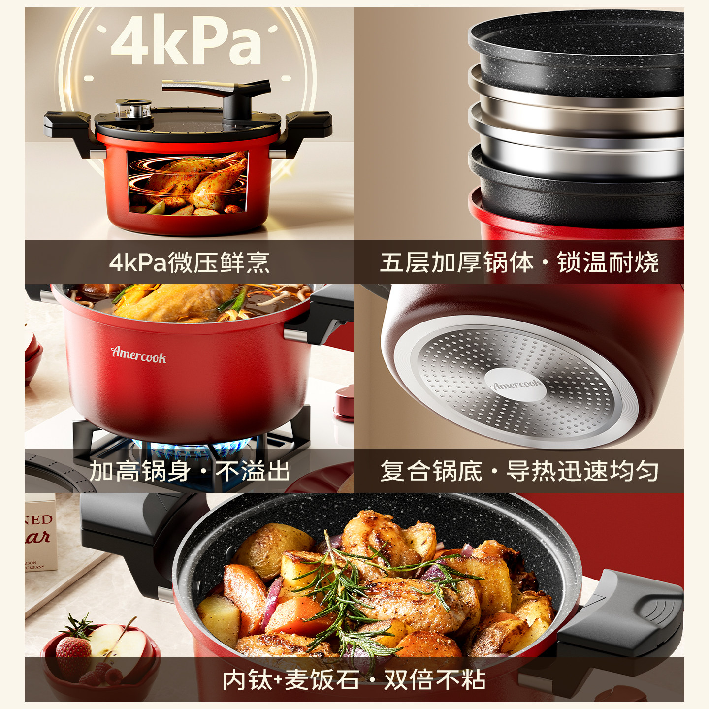 阿米尔进口麦饭石双耳汤锅微家用不粘煲汤炖锅燃气电磁炉大容量