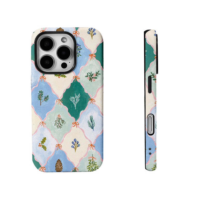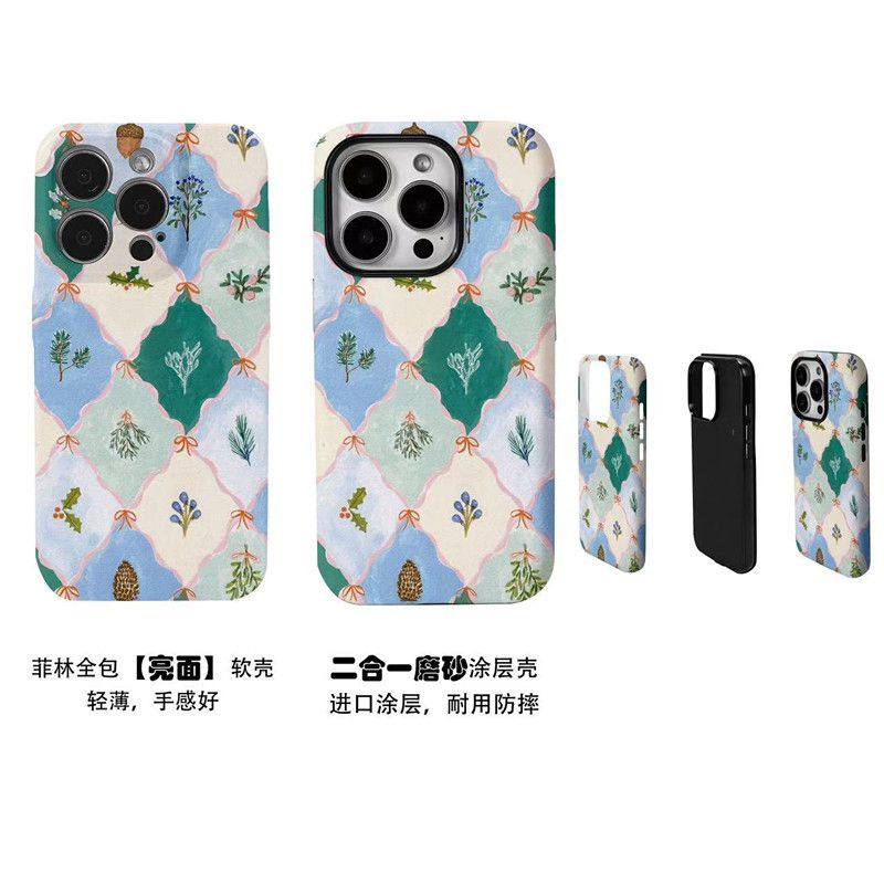 清新棋盘格花朵复古绿菲林二合一手机壳适用苹果17nova14华为p70mate60小米15opporen14ovivo荣耀300iPhone16