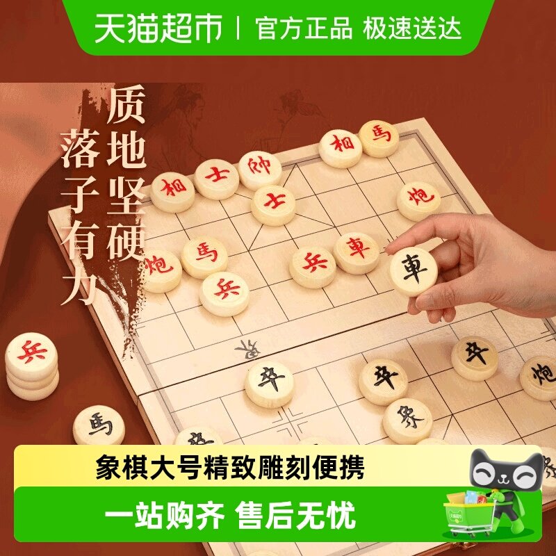 晨光文具中国象棋大号带棋盘儿童高档实木棋子便携式折叠象棋国际