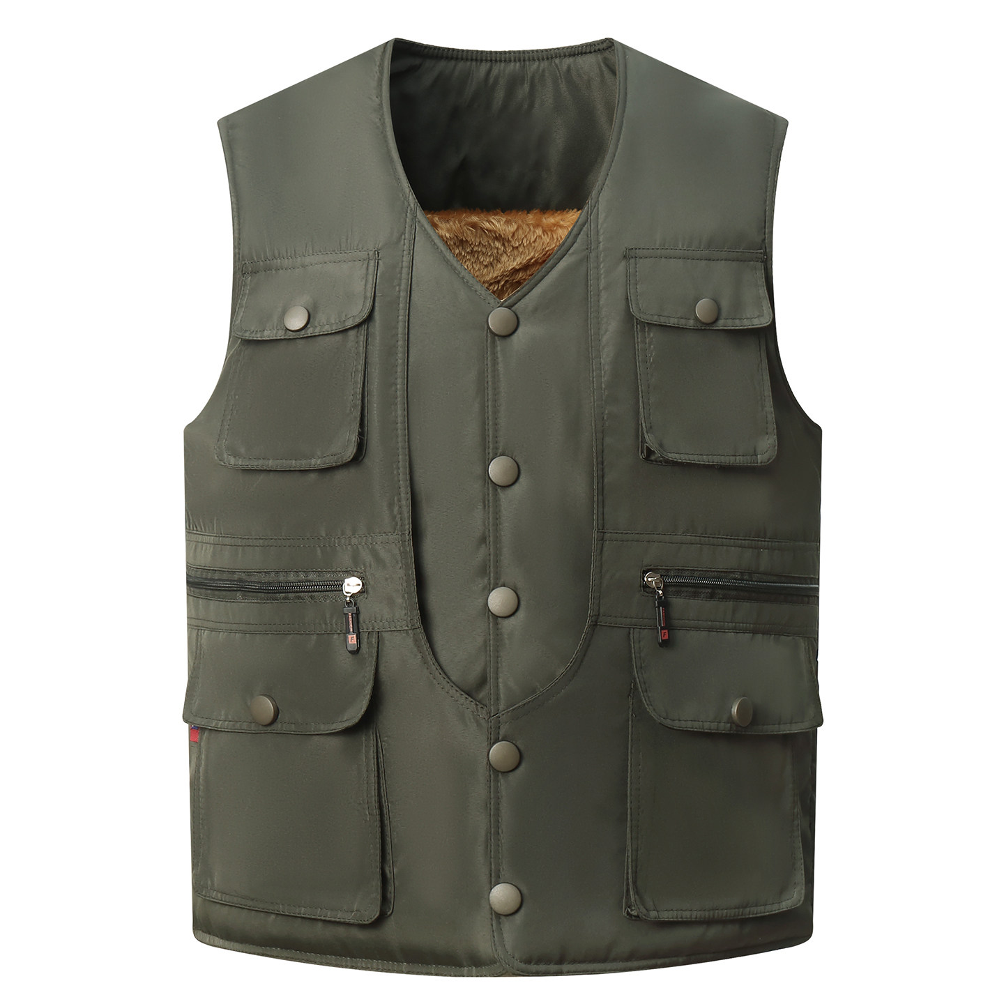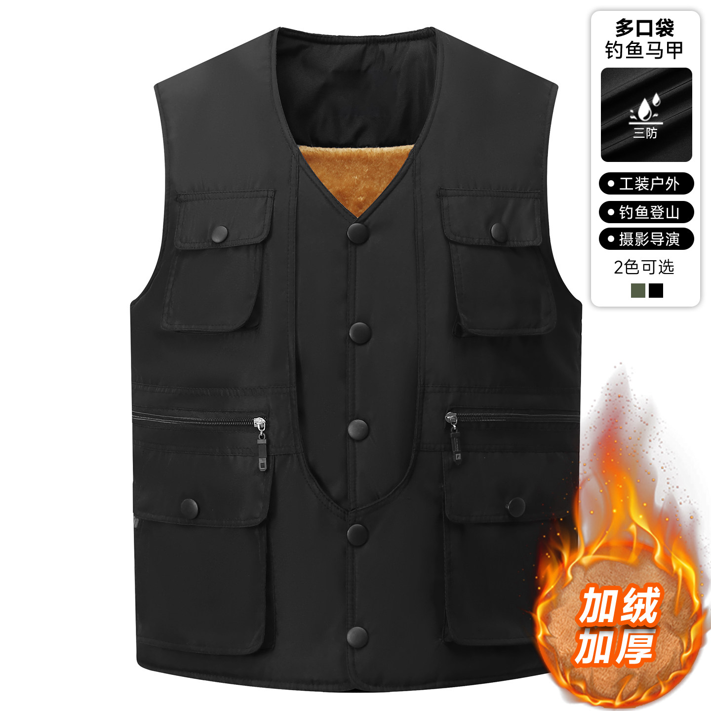 春秋季中老年马甲男士薄款背心多口袋钓鱼坎肩爸爸加绒军绿导演