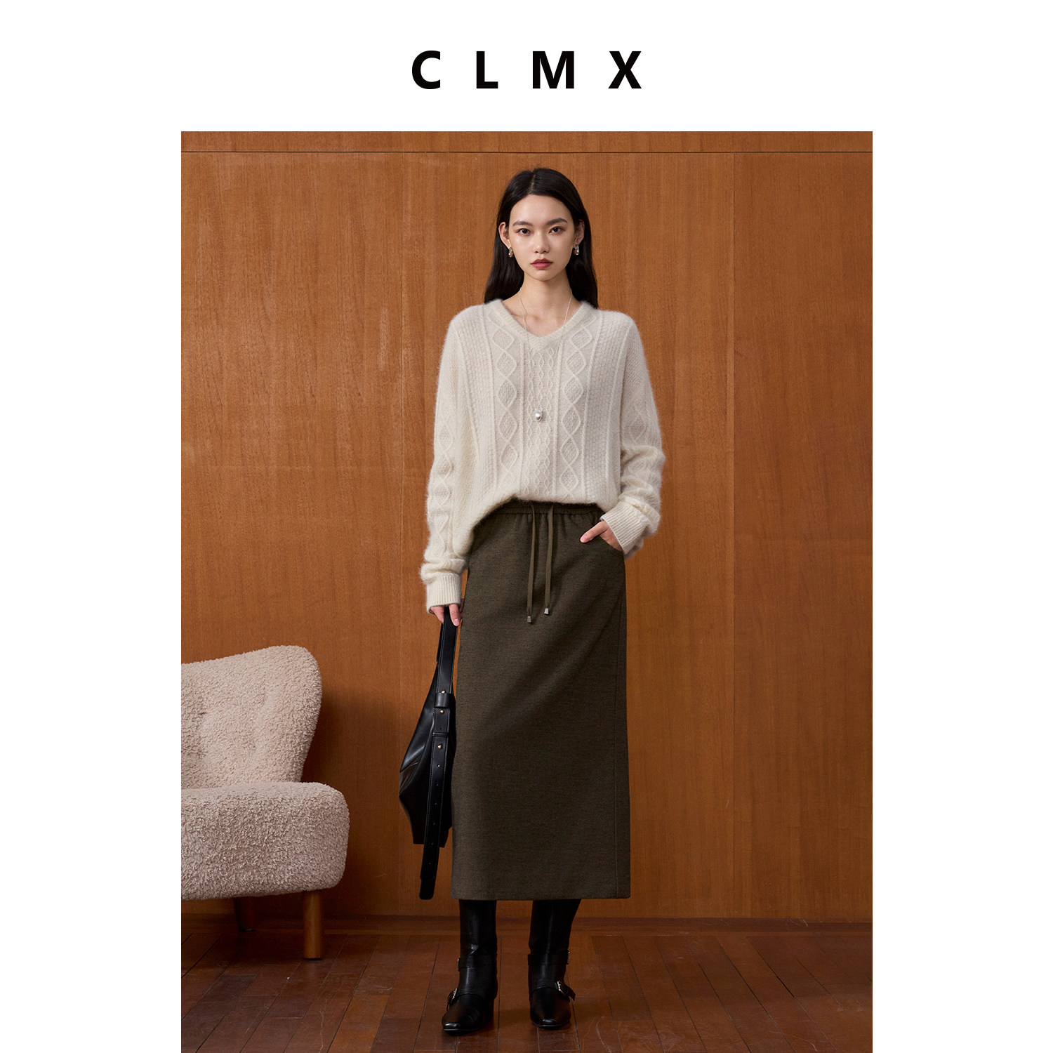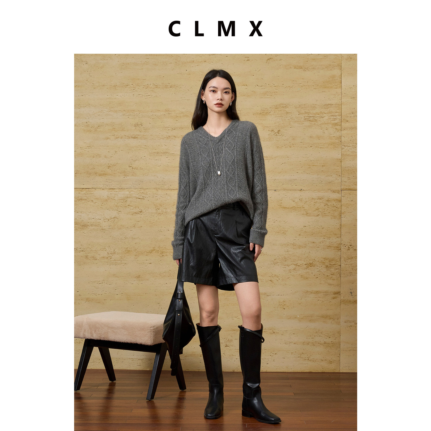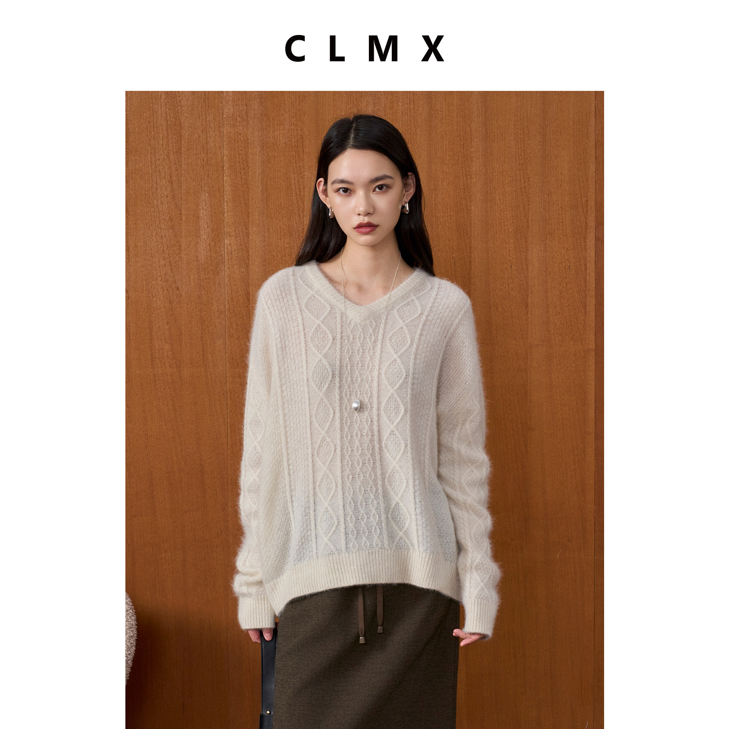 CLMX亲柔软糯松弛感羊绒羊毛纱针织经典V领落肩宽松套头绞花毛衣