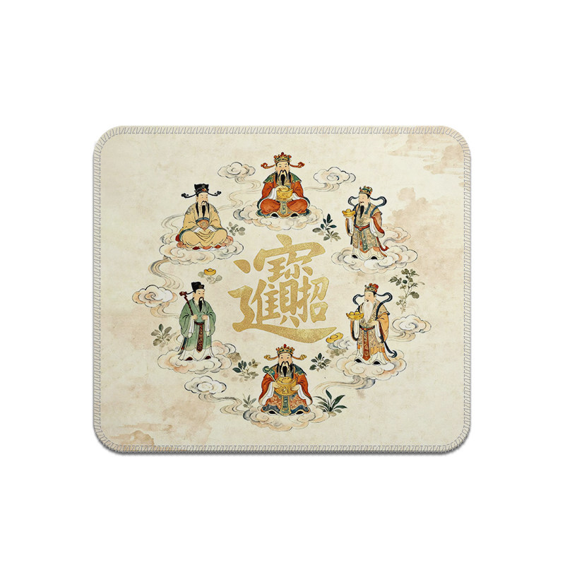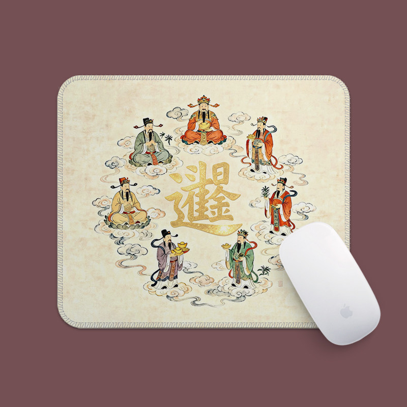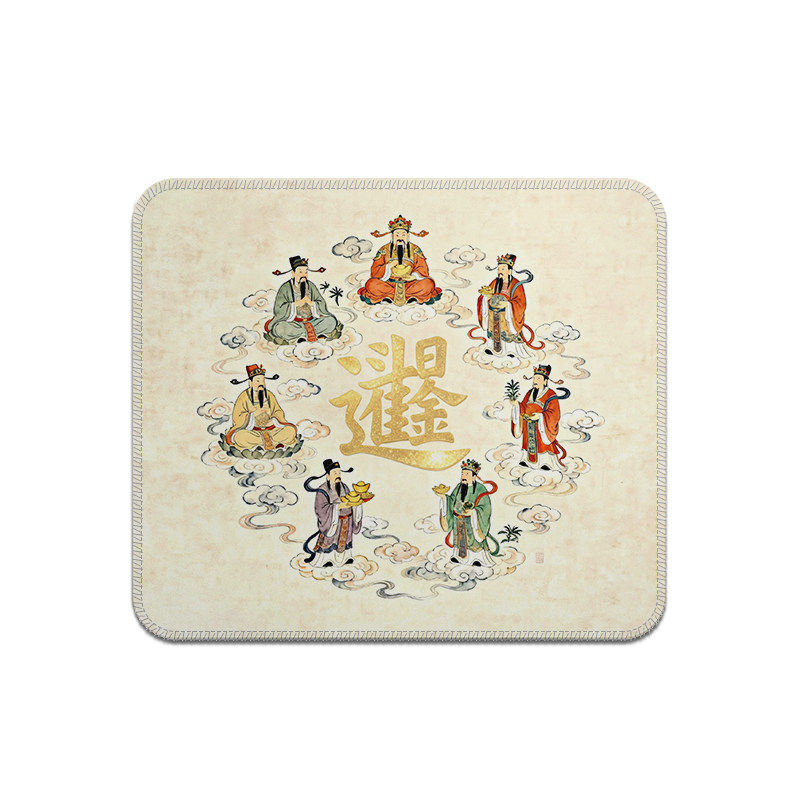 五路财神国潮鼠标垫方形小号锁边支持图案文字定制女生高颜值耐脏