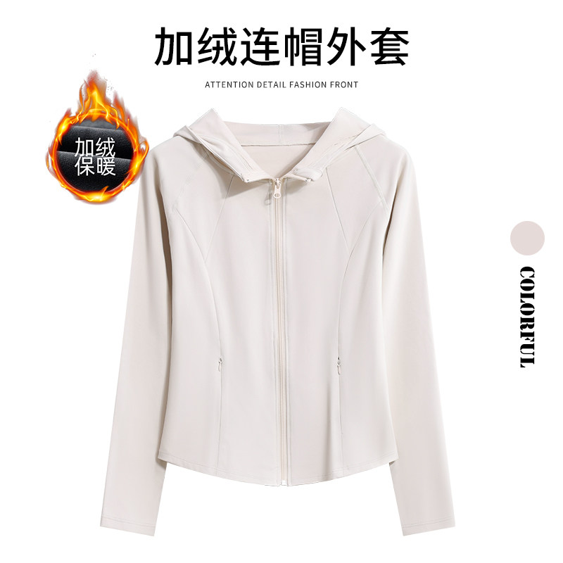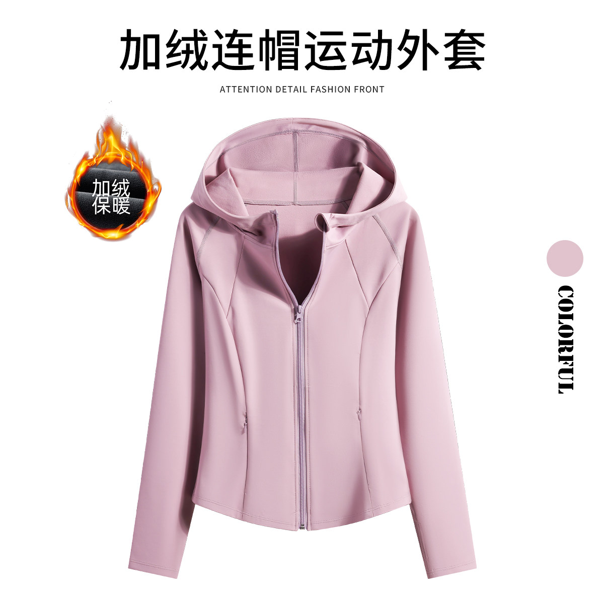 加绒保暖运动上衣外套女修身显瘦跑步瑜伽服普拉提健身服弹力速干