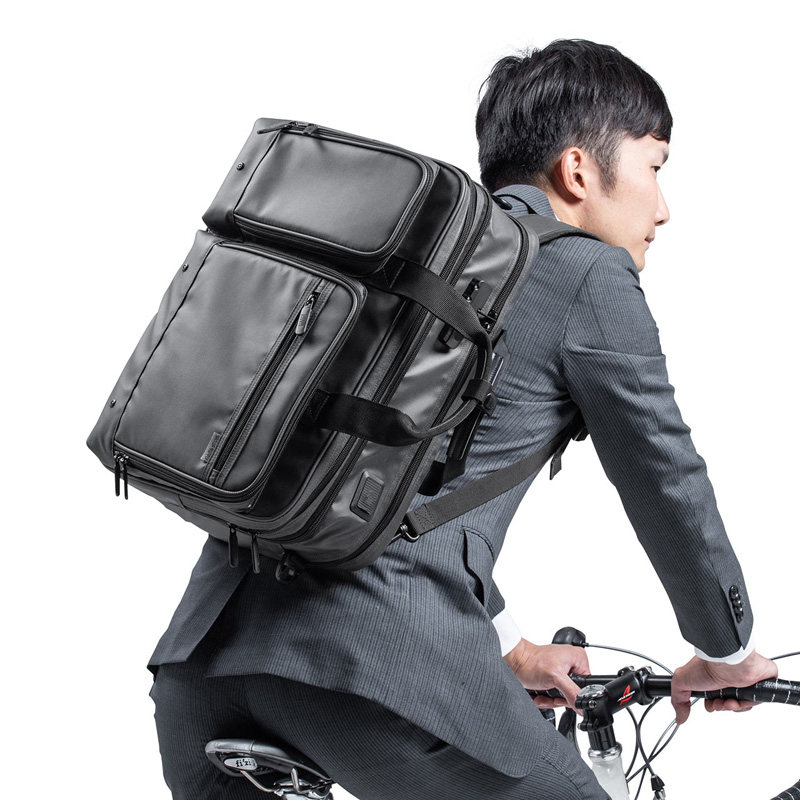 日本SANWA防泼水好看笔记本包电脑包手提女双肩背包双口USB充电出差旅行15点6寸商务男包高级感