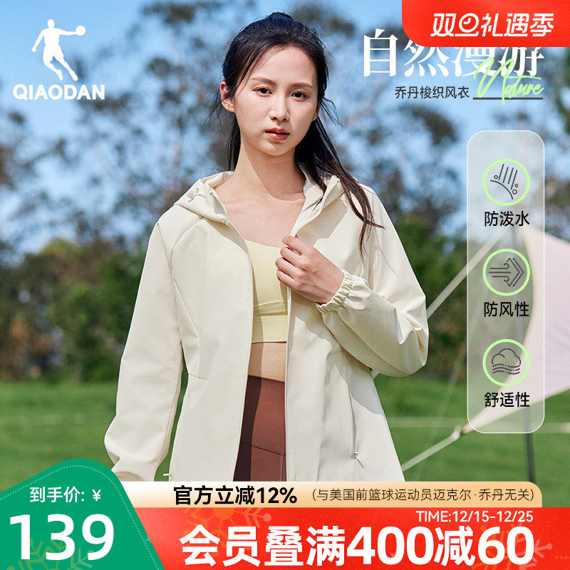 乔丹连帽梭织风衣女生2025冬季新款单层防风休闲运动户外登山外套