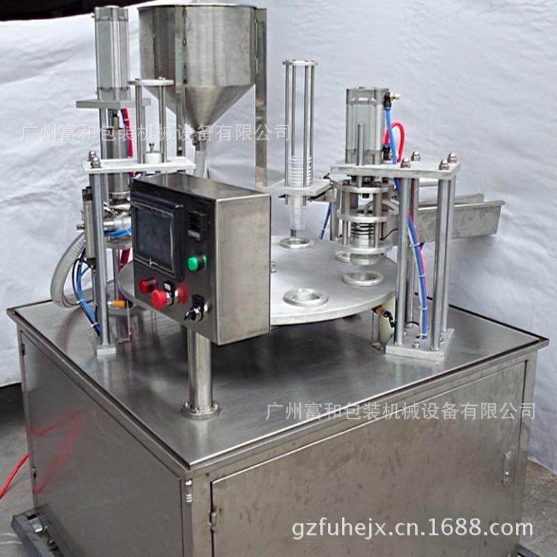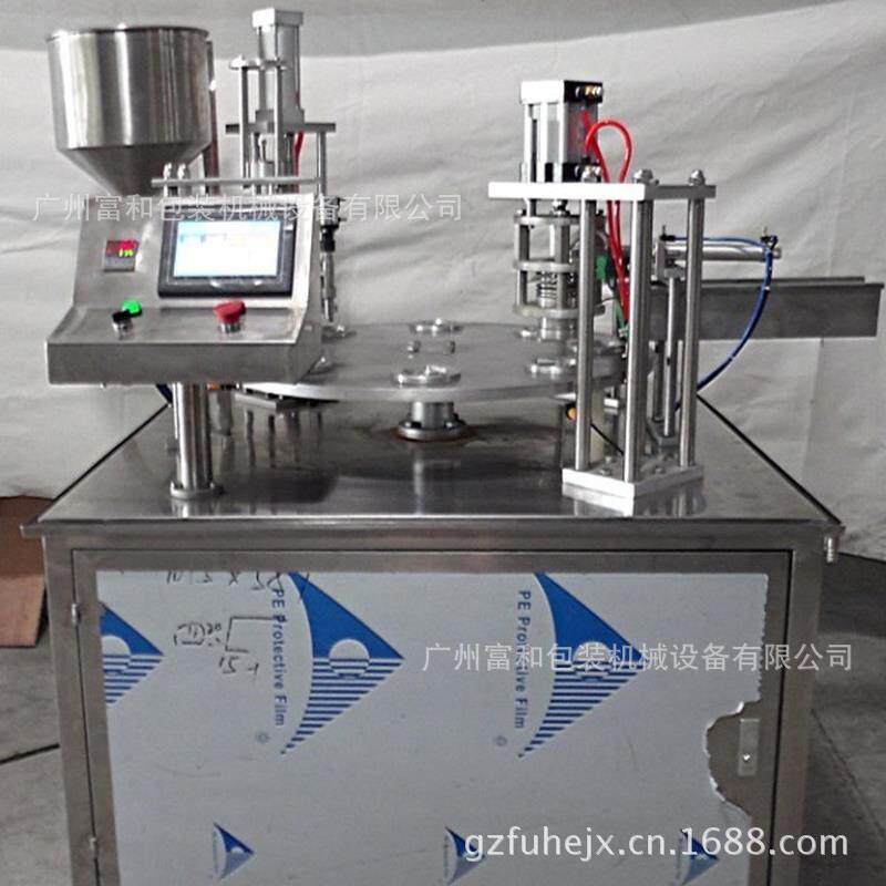 触膜屏转盘式塑杯灌装封口机酸奶灌装封口机食品自动定量灌装机
